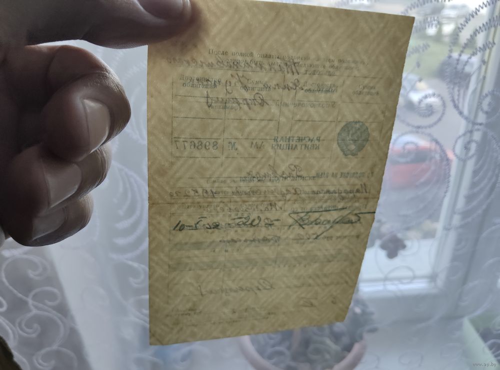 Расчетная квитанция по подписке на заём 1952 год,бумага с в/з.