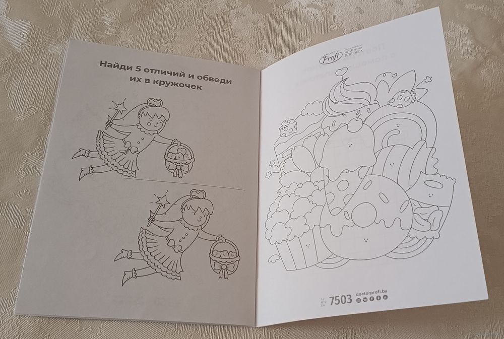 Раскраска от многопрофильной клиники "Доктор Профи"., стр. 8, мягкая обложка, уменьшенный формат.