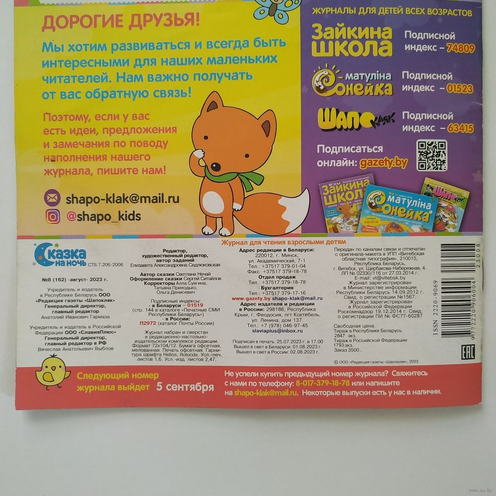 РАСПРОДАЖА!!! Детский журнал "Сказка на ночь", август/2023