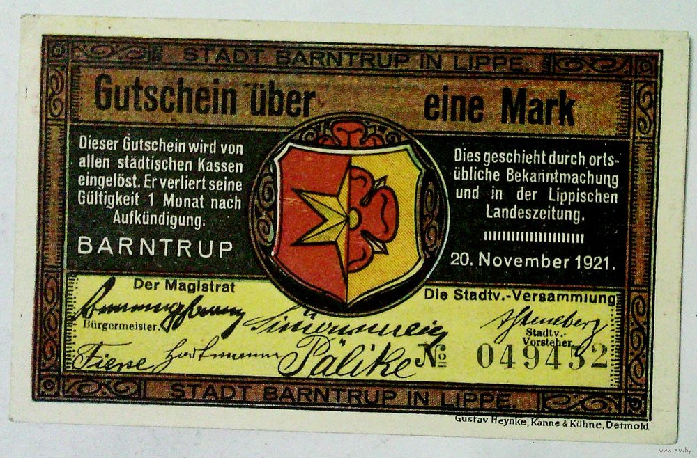 РАСПРОДАЖА!!! - ГЕРМАНИЯ БАРНТРУП (Северный РЕЙН-ВЕСТФАЛИЯ) 1 марка 1921 год - BU!