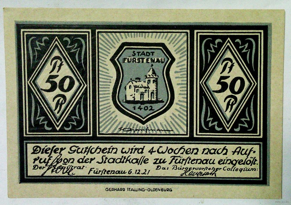 РАСПРОДАЖА!!! - ГЕРМАНИЯ ФЮРСТЕНАУ (Нижняя САКСОНИЯ) 50 пфеннигов 1921 год- UNC!