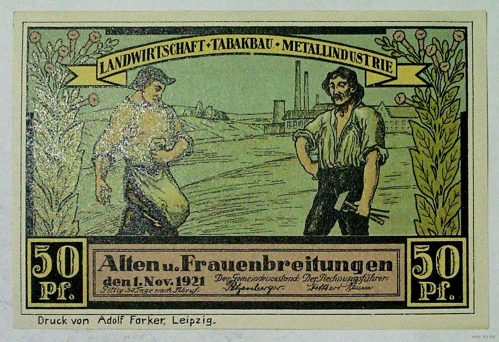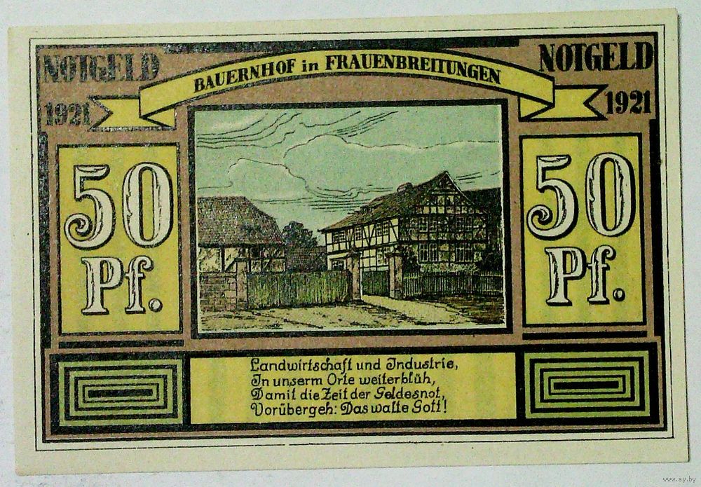 РАСПРОДАЖА!!! - ГЕРМАНИЯ КОМУННА АЛЬТЕН и ФРАУЭНБРЕЙТЮНГЕН (ТЮРИНГИЯ) 50 пфеннигов 1921 год (четвёртый сюжет) - UNC!