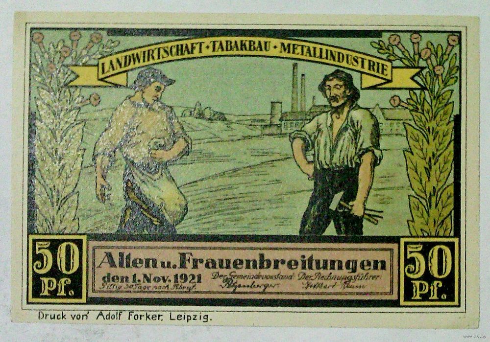 РАСПРОДАЖА!!! - ГЕРМАНИЯ КОМУННА АЛЬТЕН и ФРАУЭНБРЕЙТЮНГЕН (ТЮРИНГИЯ) 50 пфеннигов 1921 год (первый сюжет) - UNC!