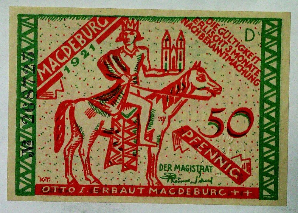 РАСПРОДАЖА!!! - ГЕРМАНИЯ МАГДЕБУРГ (САКСОНИЯ-АНХАЛЬТ) 50 пфеннигов 1921 год "D"- UNC!