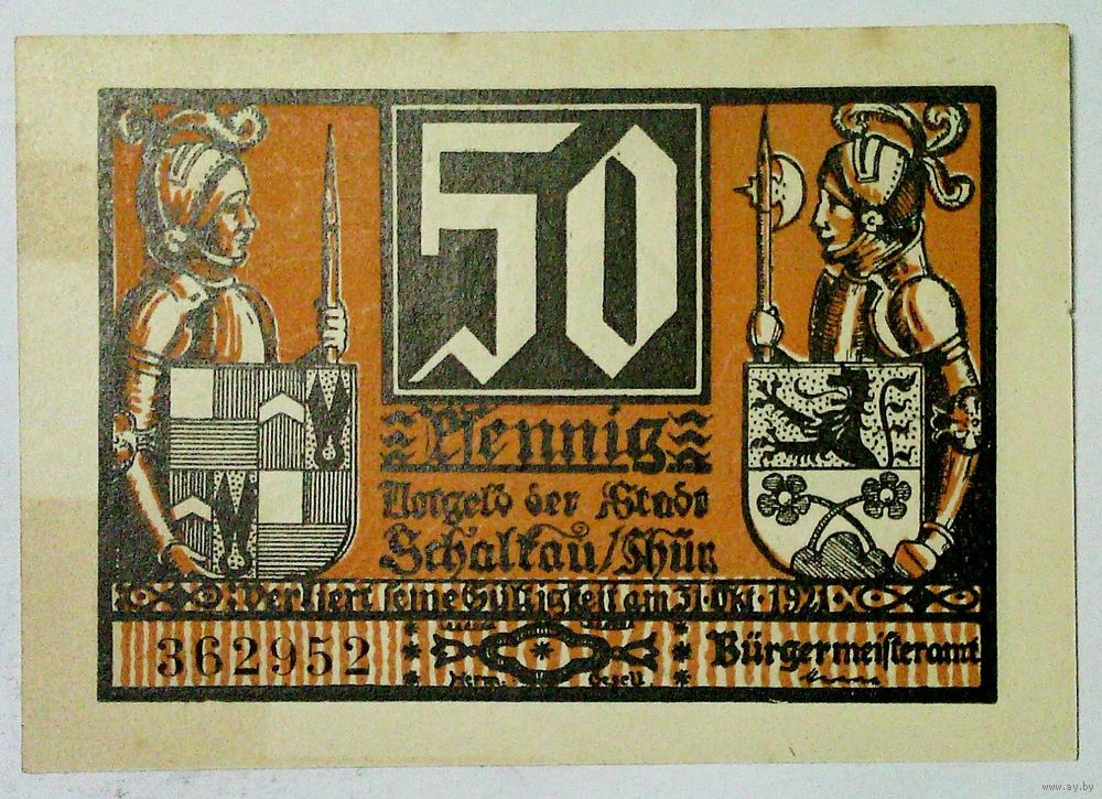 РАСПРОДАЖА!!! - ГЕРМАНИЯ ШАЛЬКАУ (ТЮРИНГИЯ) 50 пфеннигов 1921 год (четвёртый сюжет) - UNC!
