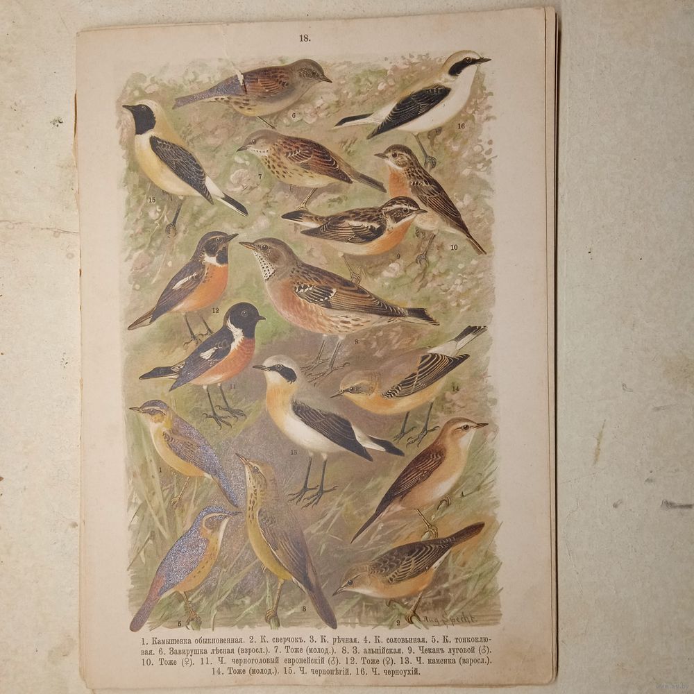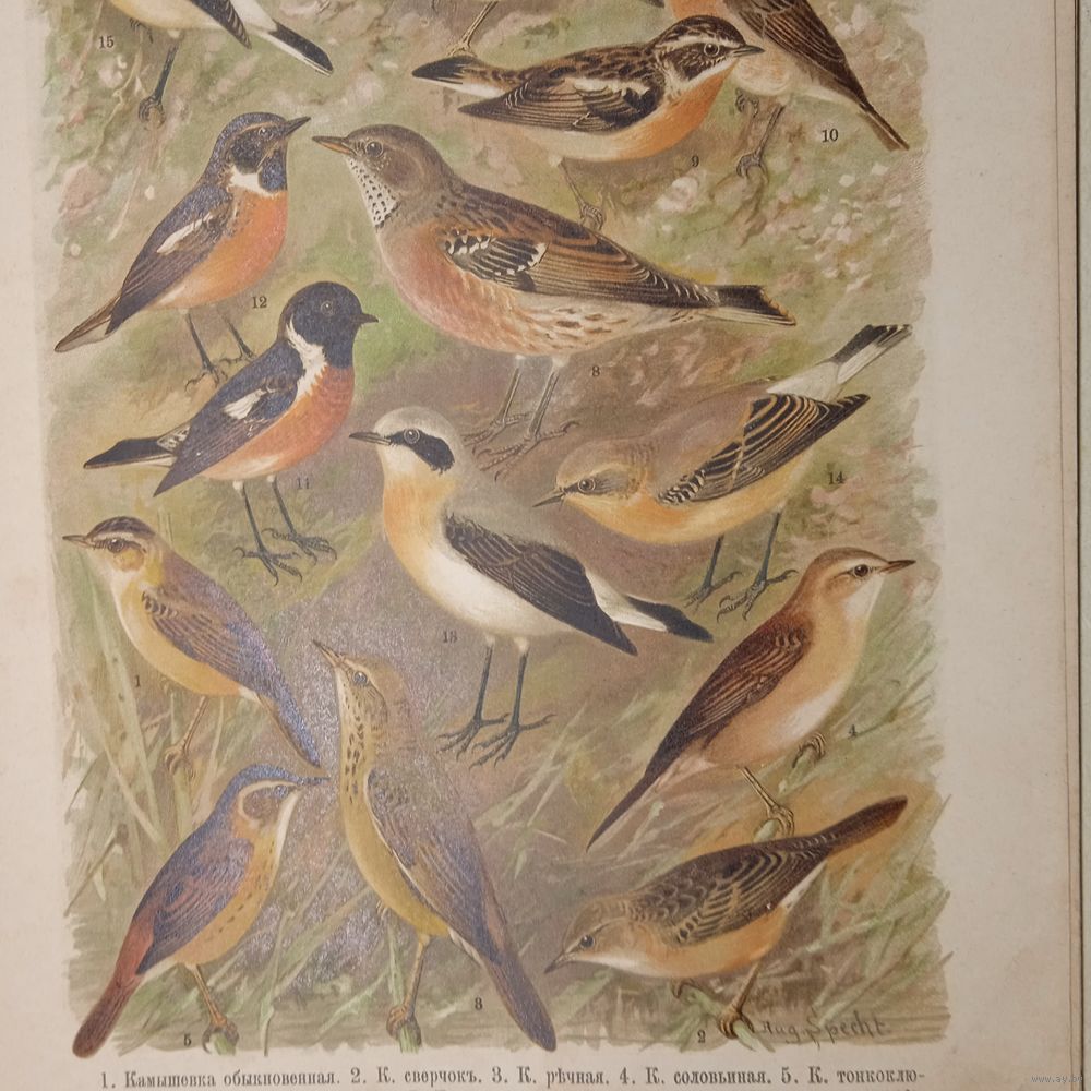 РАСПРОДАЖА КОЛЛЕКЦИИ. Камышевка... Завирушка лесная. Чеканъ... Литография СПБ. Энциклопедическая гравюра конец 19века 29х21см.