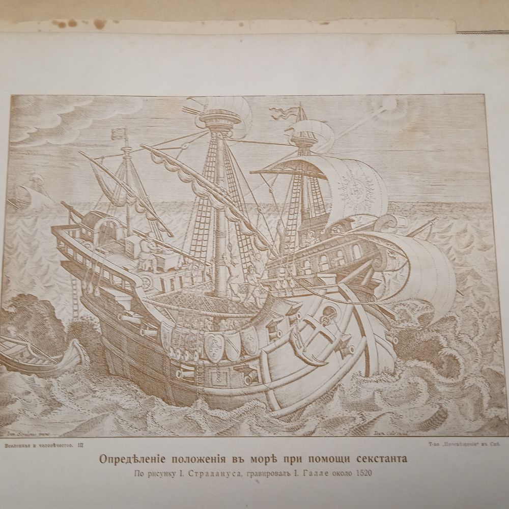 РАСПРОДАЖА КОЛЛЕКЦИИ. Определение положения въ море при помощи секстанта . Гравюра энциклопедическая 19-20век. 28х20см. СПБ.