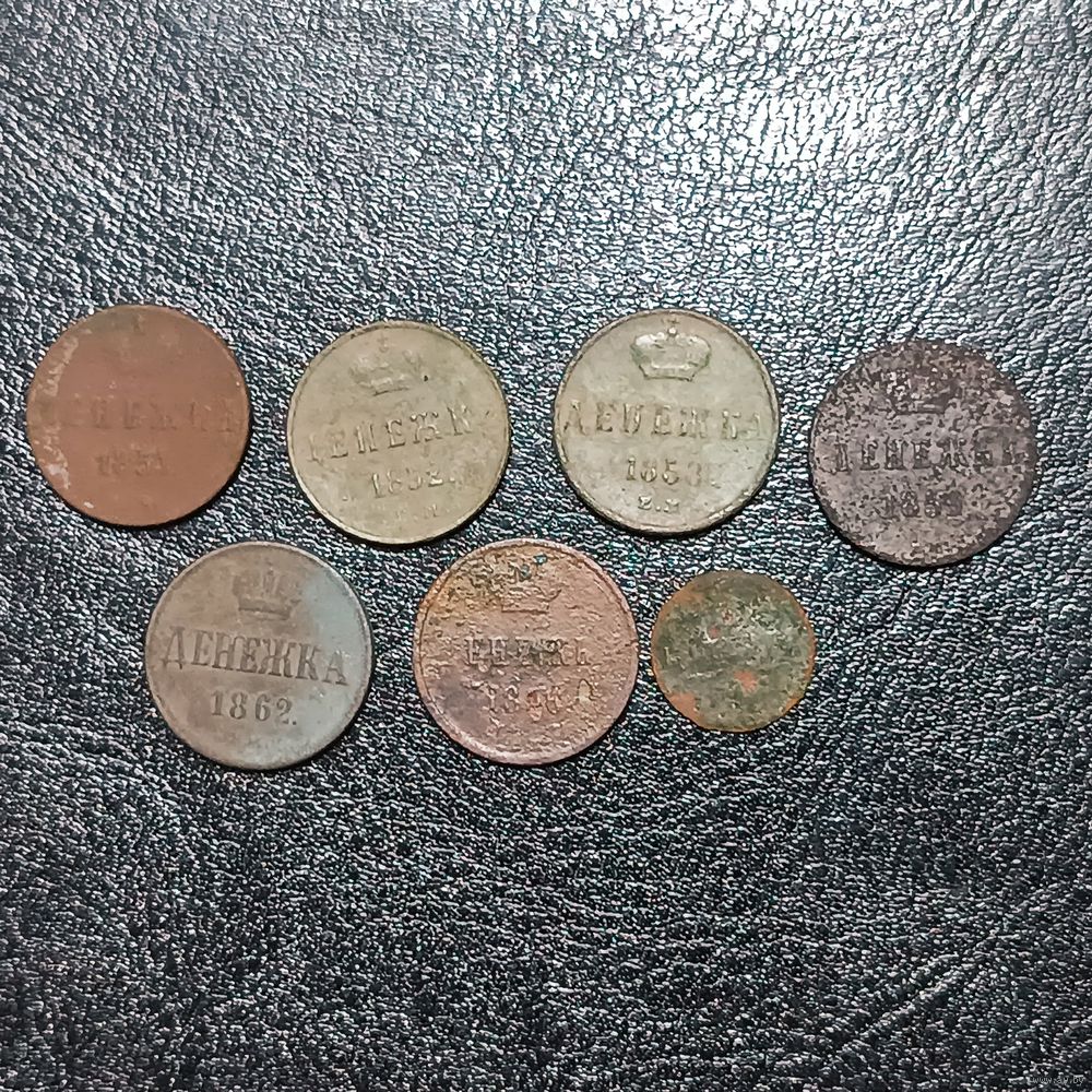 Распродажа медных монет Российской империи. Лот монет РИ #4 " денежка" Погодовка : 1851, 1852, 1858, 1859 ВМ, 1862 ВМ, 1856 ВМ + 1/4 копейки А3.