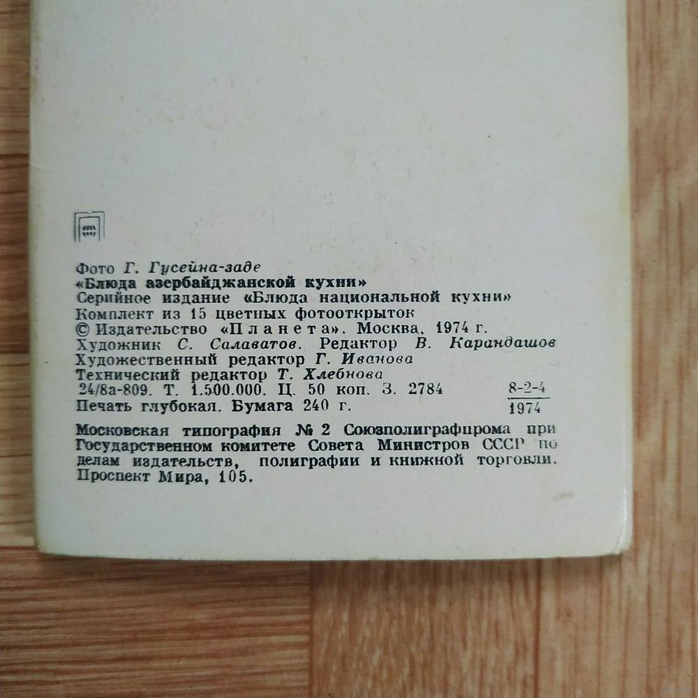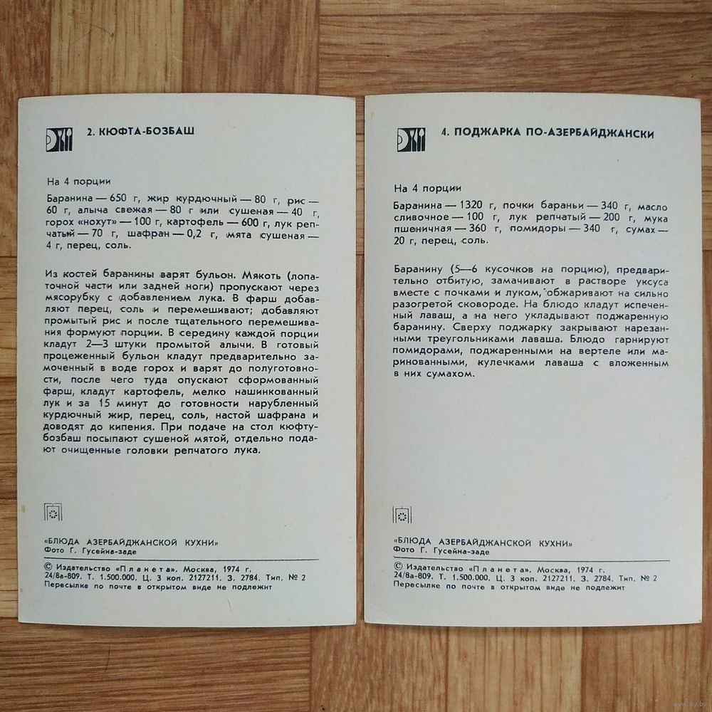 РАСПРОДАЖА!!! Набор открыток "Блюда азербайджанской кухни"