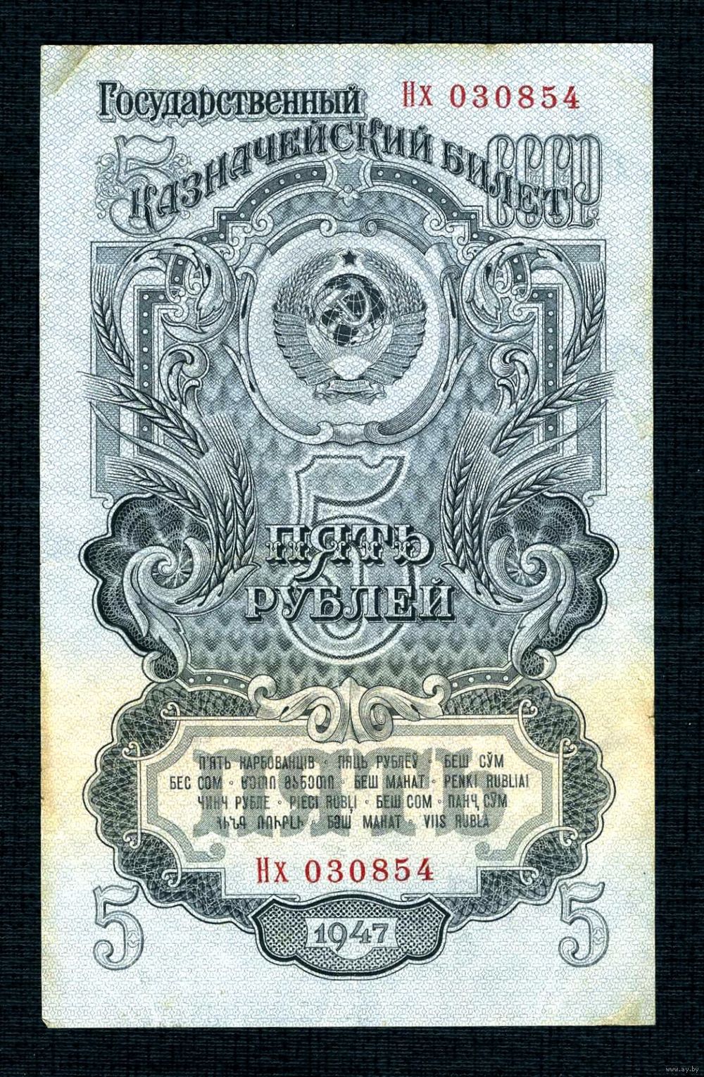 Распродажа с 1 рубля. Банкнота 5 рублей 1947.