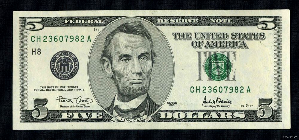 Распродажа с 1 рубля. МЦ. 5 Долларов США 2001 год.