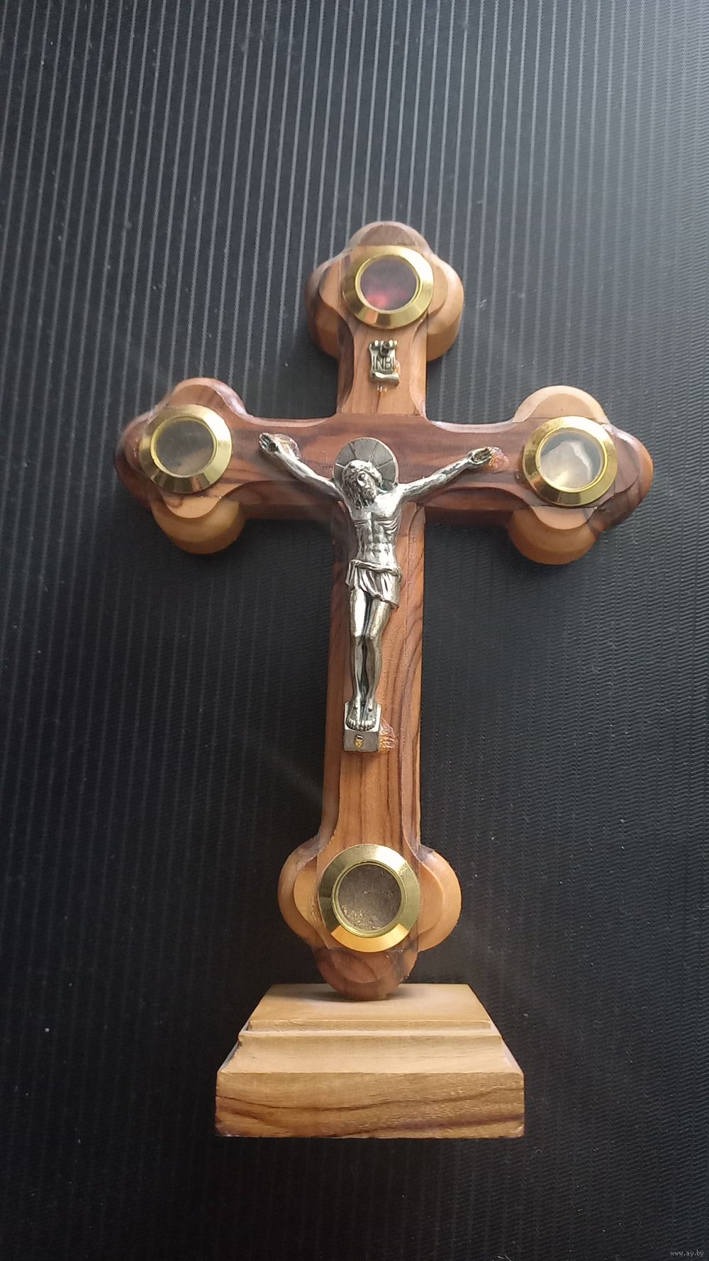 Крест из ливанского кедра, с камнями, песком и цветами Иерусалима. Привезён из Израиля. Высота 15 см.