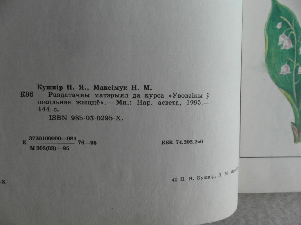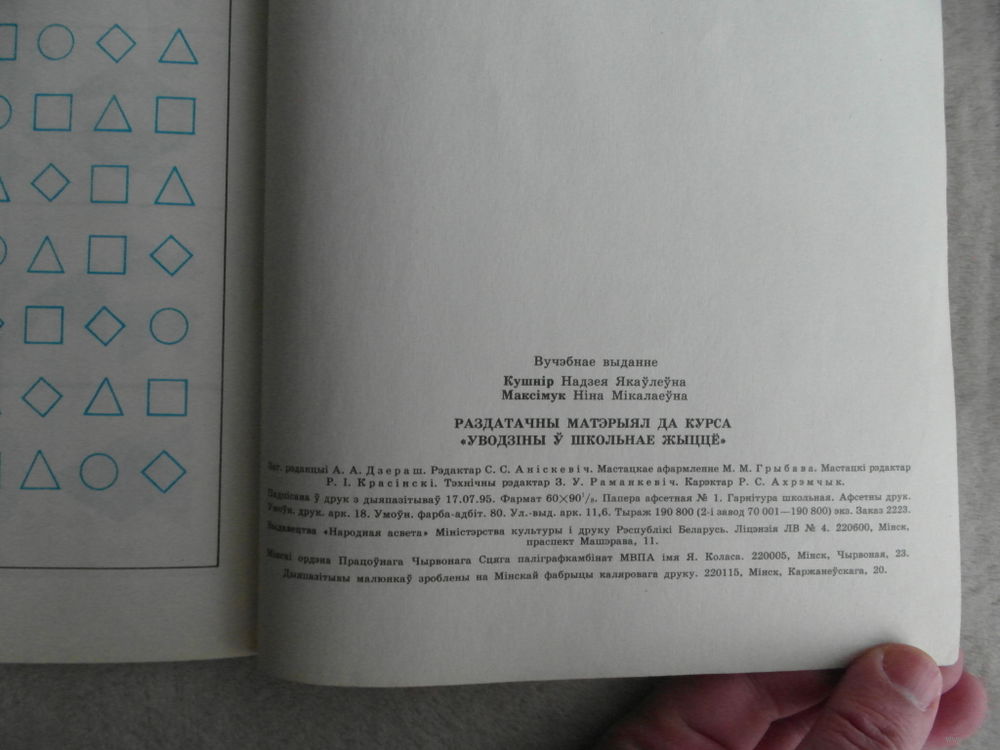 Раздатачны матэрыял да курса Уводзіны ў школьнае жыцце. Вучэбны дапаможнiк для настаўнікаў. З беларус. і рус. мовамі навучання. Н.Я.Кушнір, Н.М.Максімук.