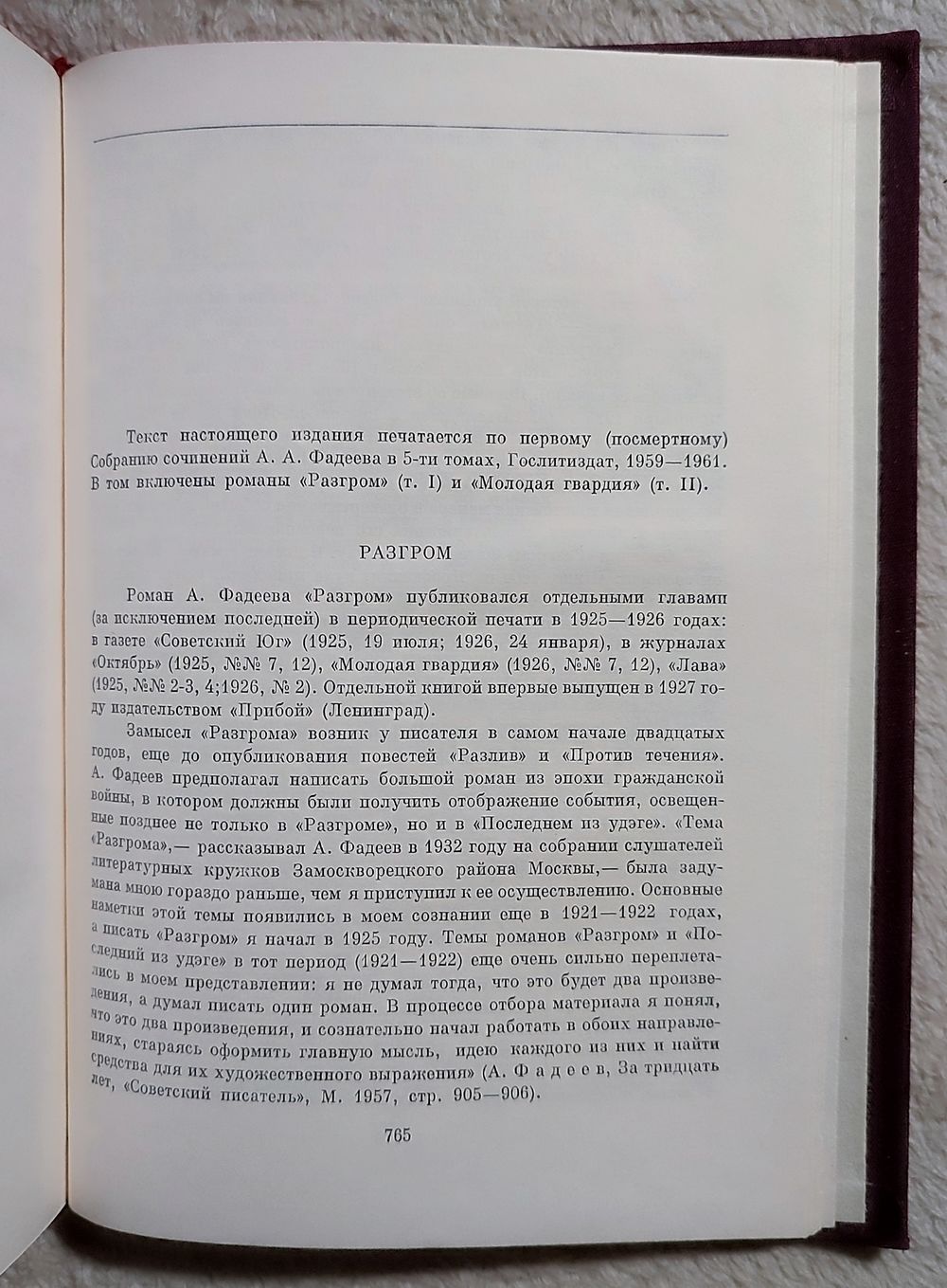 В настоящее издание вошли роман "Разгром", в котором автор описывает историю партизанского отряда во время гражданской войны, и роман "Молодая гвардия" о подвиге комсомольцев Краснодона. Действие последнего произведения происходит во время Великой Отечественной войны. Главные герои романа - молодые дюди, оставшиеся в тылу на оккупированной территории, по возрасту не подлежащие призыву, которые создавали свои организации и вместе с подпольщиками и партизанами вели борьбу против фашистских захватчиков.