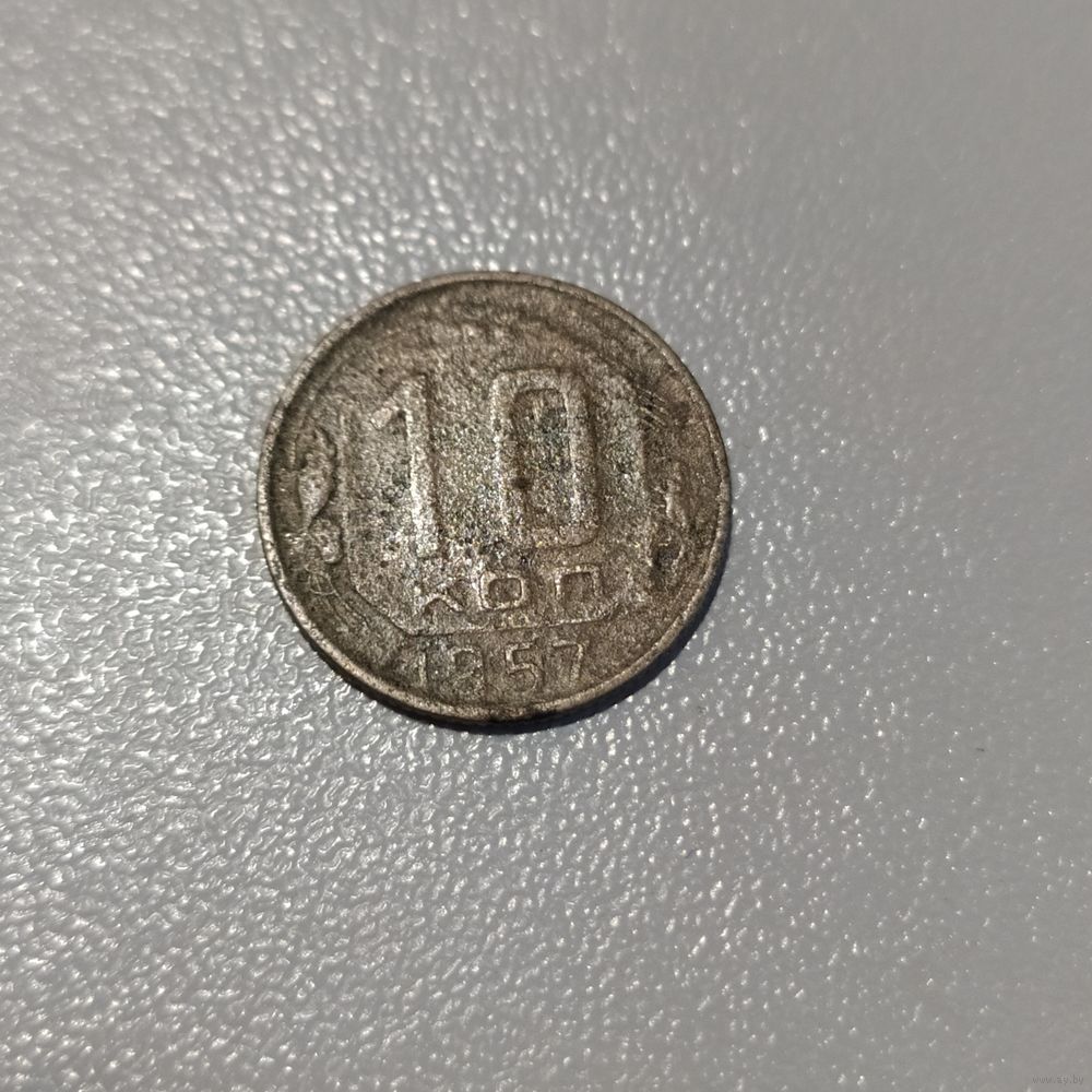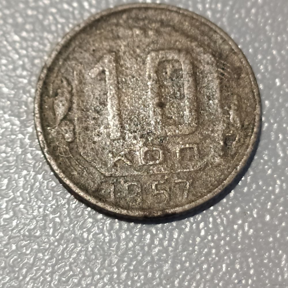 Разновидность монеты ссср -10 коп.1957г., б/у, оригинал с 15 лент.., находка, не чищена, остальное на фото...