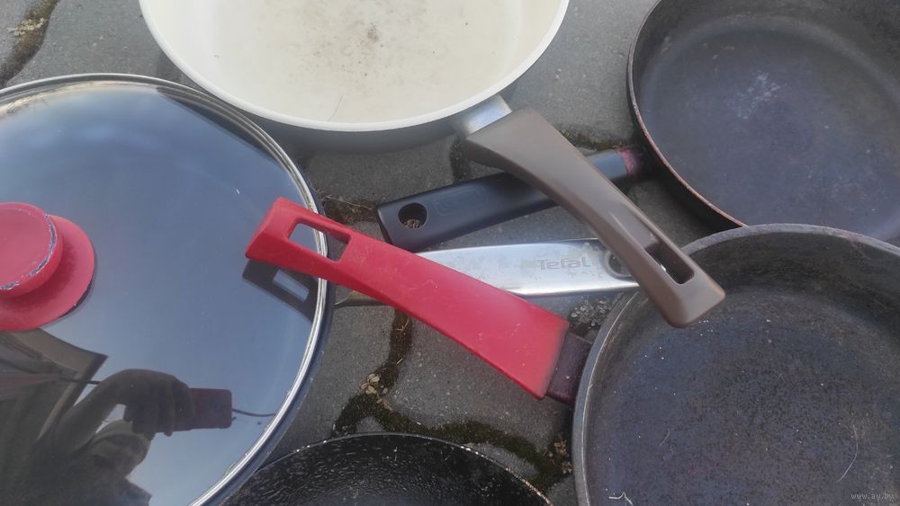 Разные сковородки, б/у не более 2-х лет. 2 - Tefal. Цена за все.