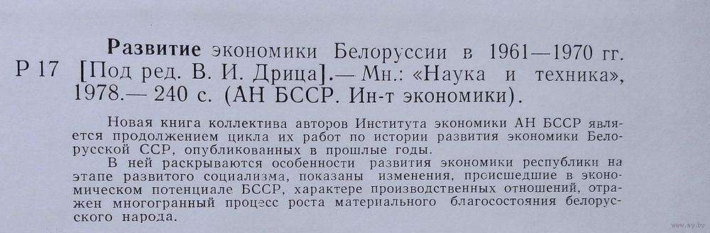 Развитие экономики Белоруссии в 1961-1970 гг. Академия наук Белорусской ССР, Институт экономики. - Минск : Наука и техника, 1978 г. 237 с. Твердый переплет