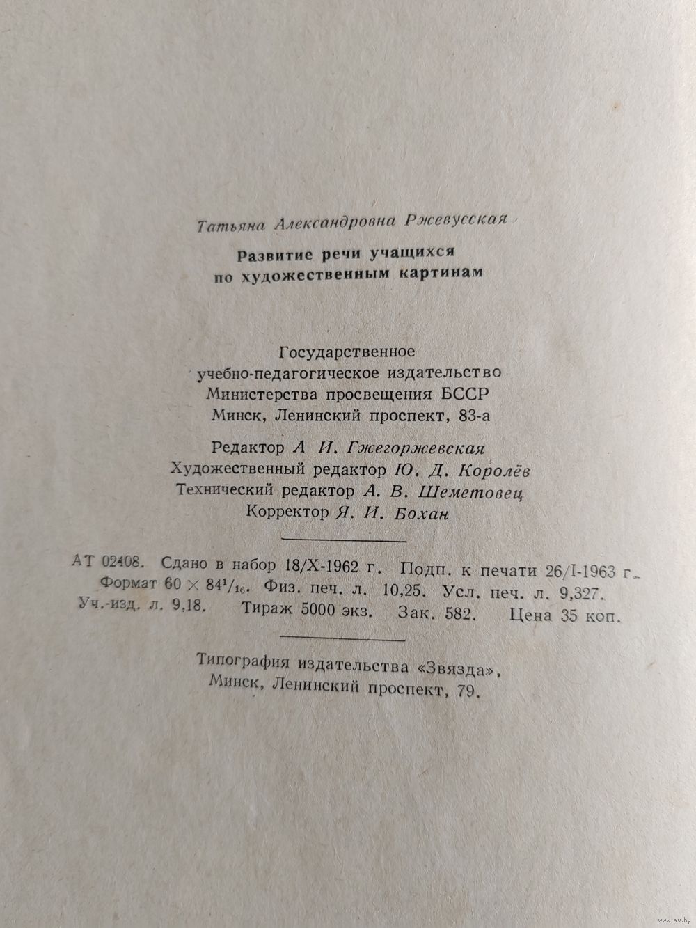 Развитие речи учащихся по художественным картинам. 1963 г. Тираж 5000 штук