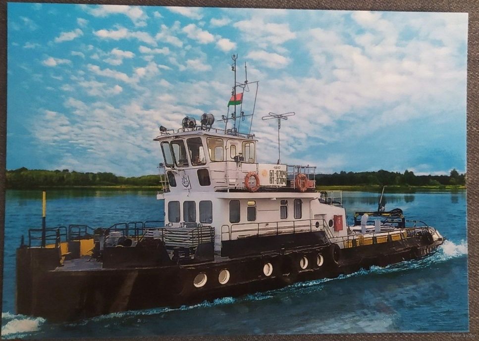 Речной флот. Буксировщик-толкач. Открытка, 2023, глянец