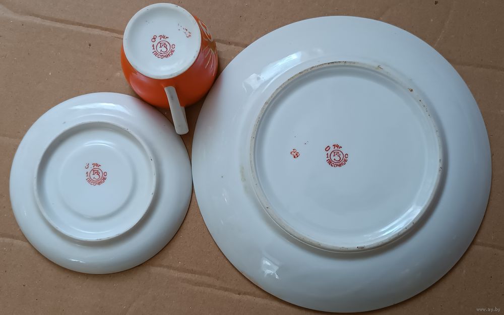 Оригинал. СССР. Редчайшая, если пару можно встретить, то тройку практически нет. Экспонат музейного уровня . Без сколов и трещин. Размер диаметр тарелки 19 см, блюдца 12 см, чашка высота 5 см, диаметр 6 см. Доставку оплачивает покупатель при получении лота на Белпочте. Полная предоплата до отправки лота по почте. Смотрите и другие мои лоты, выставленно много интересных лотов с 1 рубля! Качественную упаковку гарантирую! Отправка Белпочтой. Выход на связь в течении трёх дней, выкуп лота в течении семи дней, далее черный список и отрицательный отзыв! Делайте обдуманно Ваши ставки, прежде чем покупать лот, хорошо подумайте, нужен ли он Вам! Ставки не отменяю! Купленный товар возврату не подлежит.Спасибо за проявленный интерес к данному лоту! Всем удачи в торгах! Подписывайтесь на мои лоты, постоянно выставляю много интересных лотов с 1 рубля!