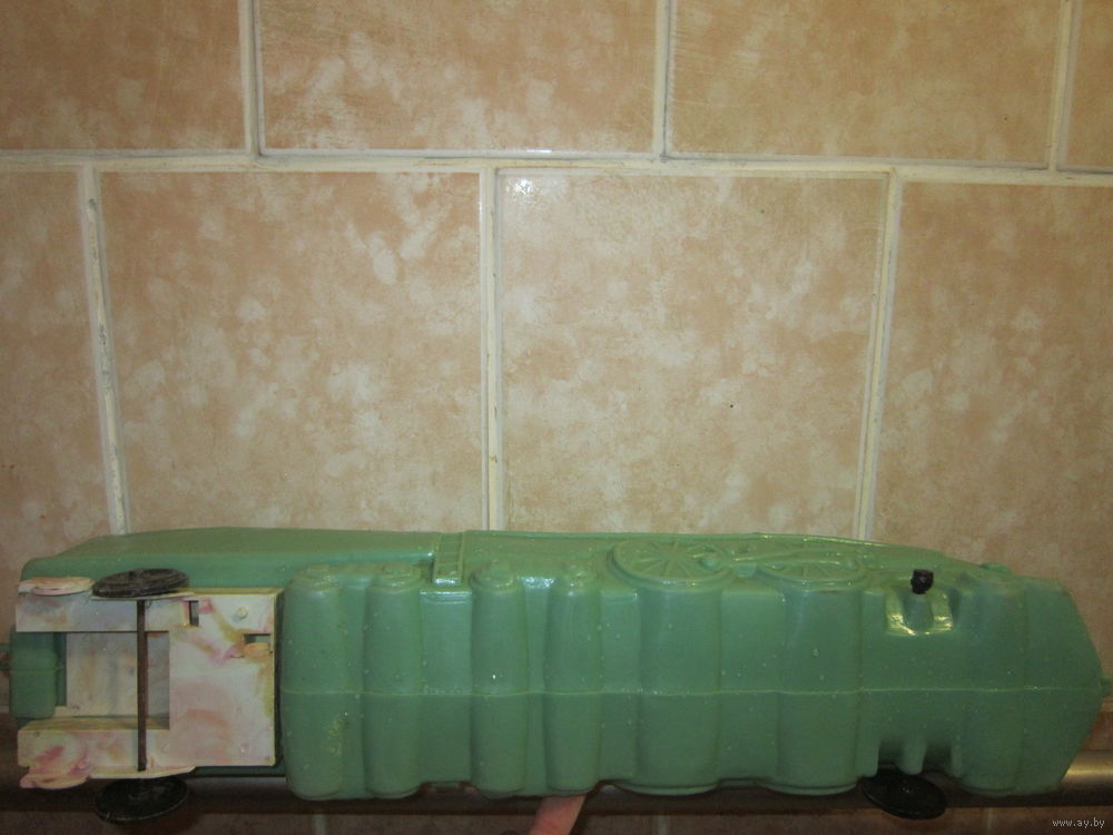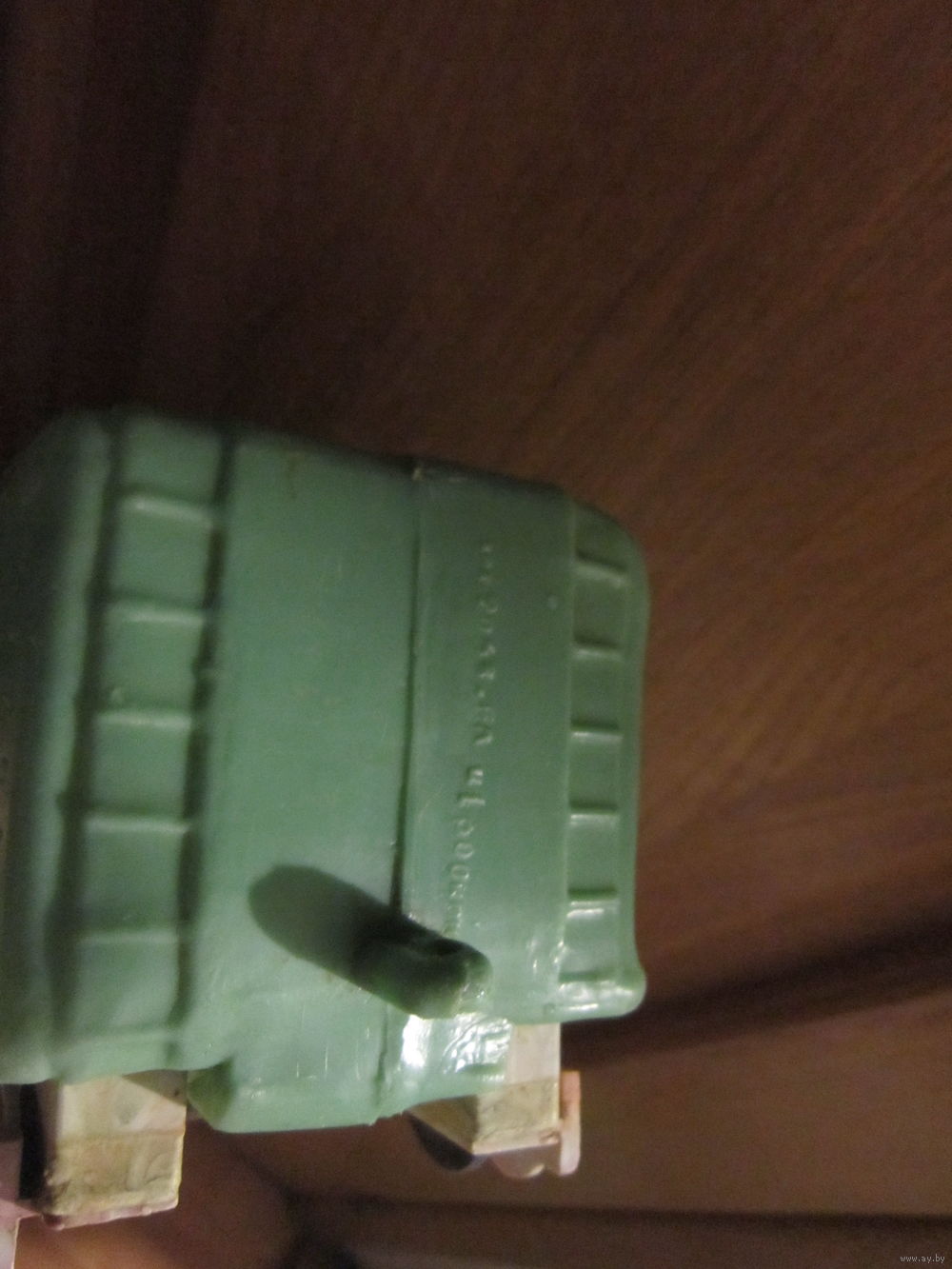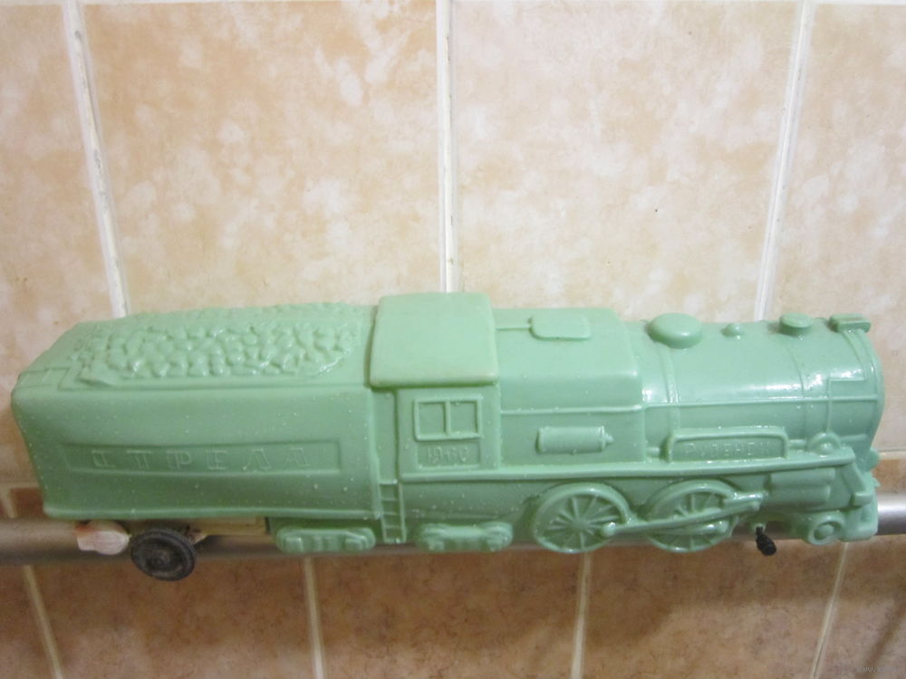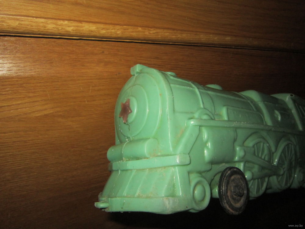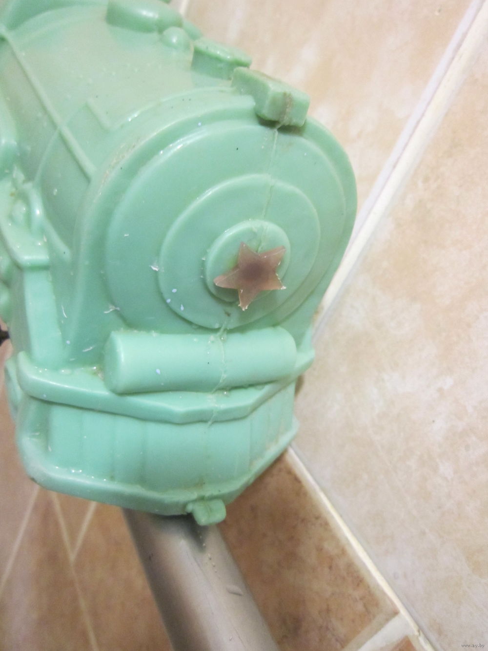 Скорее всего, заводскую дырочку ( они есть во всех игрушках-дутышах) просто расковыряли. Когда сжимаешь, паровозик издает свист.