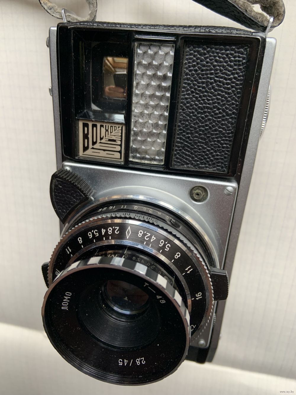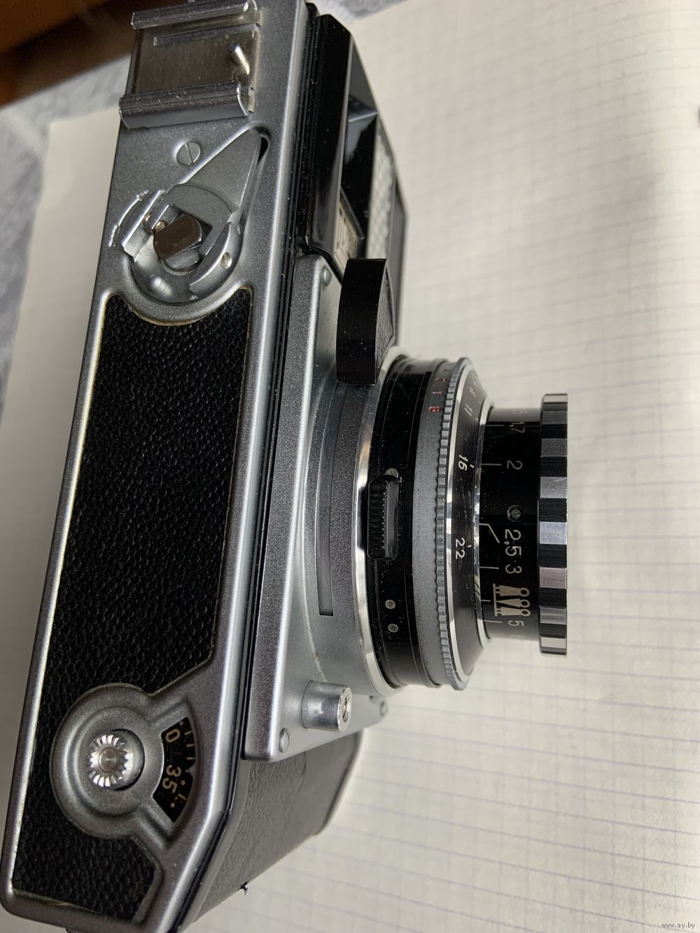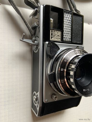 | Один из первых с полуавтоматом экспозиции.В основном для портретной съёмки. выпускался без жёсткого чехла-носился на ремешке в вертикальном положении. Полностью рабочий! | |