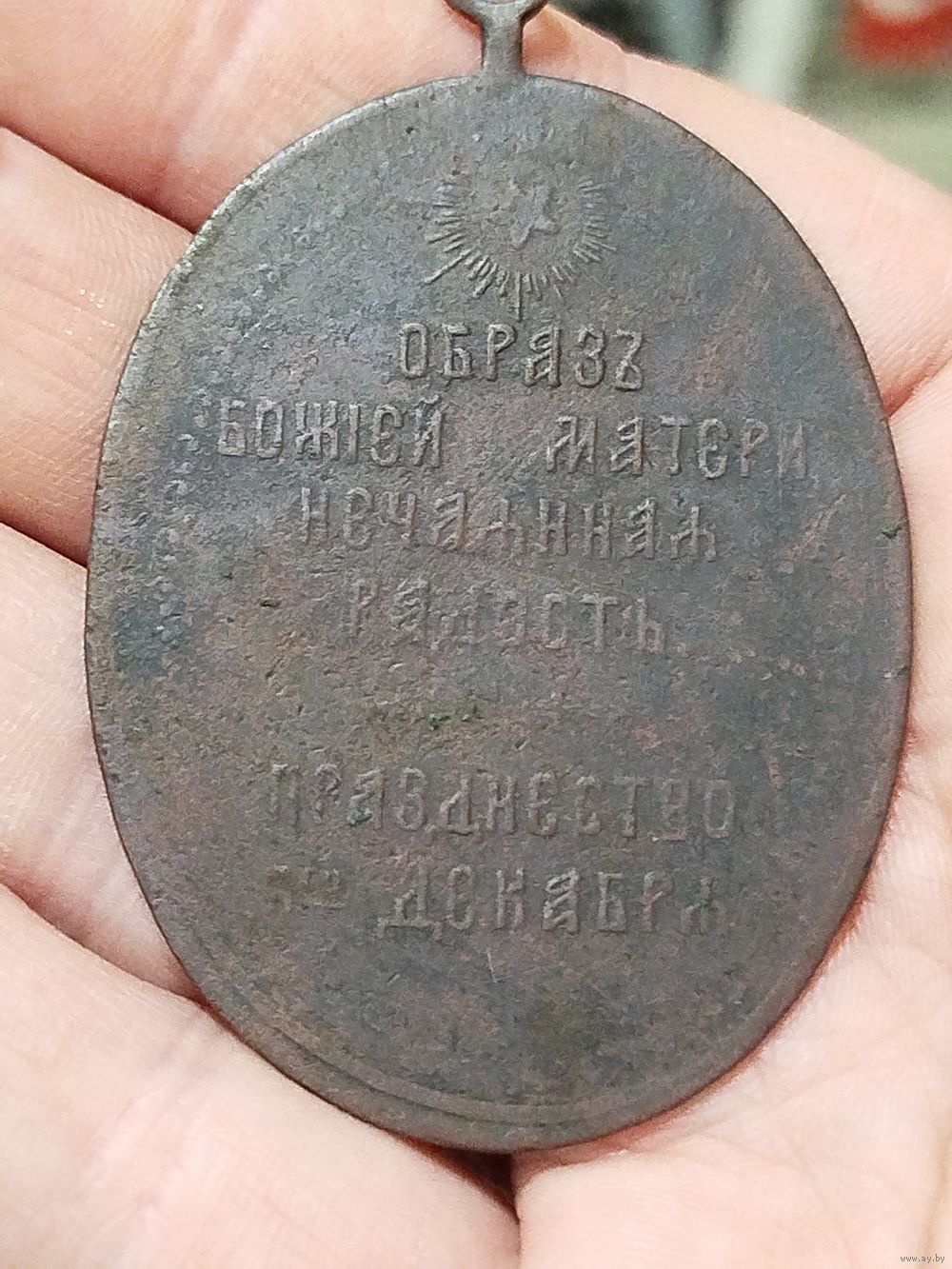 Православная икона Божией Матери «Нечаянная Радость». День почитания этой иконы приходится, в частности, на 9 декабря (дата указана на окладе иконы). Сама икона относится к концу XIX века.