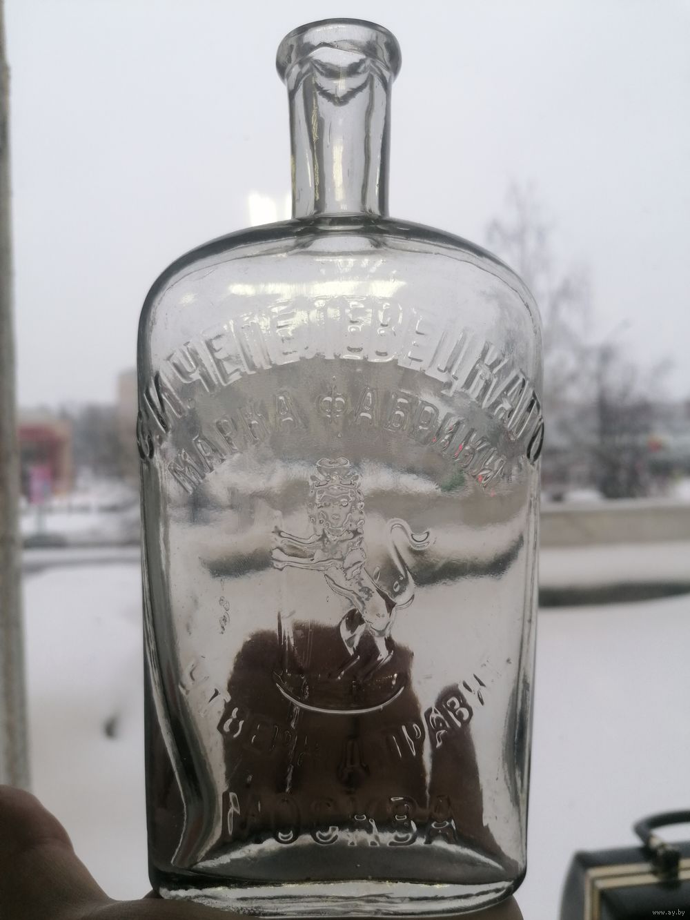 В хорошем состоянии. Незначительная щербинка на горлышке. В остальном хорошо.