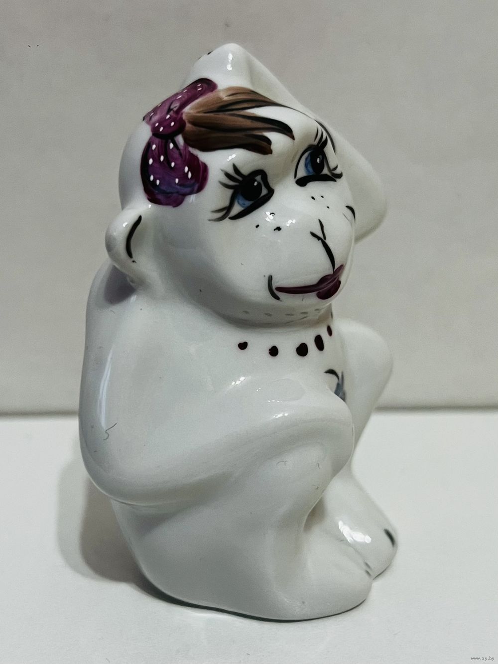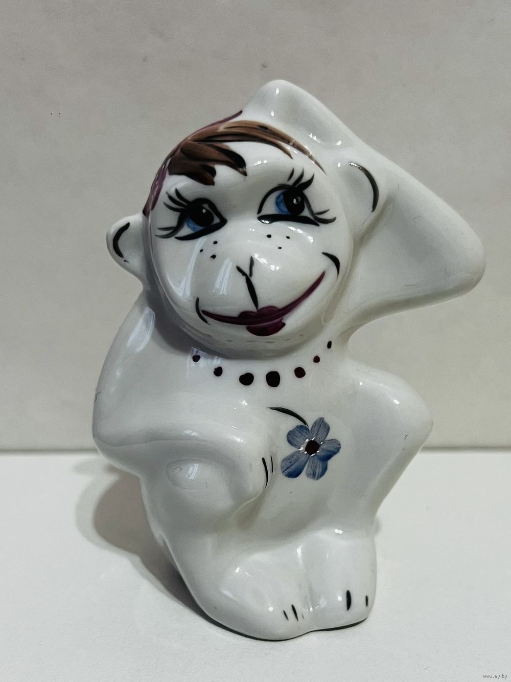 Фарфоровая статуэтка "Обезьяна", высота 8,5 см, производство Добрушский Фарфоровый Завод (ДФЗ). Продавец не является экспертом, после выигрышной ставки вы получите предмет, изображенный на фотографии. Делая ставку вы принимаете условия продажи лота, установленные продавцом. Пересылку оплачивает покупатель. Выход на связь в течение 3 дней. Оплата лотов в течение 5 дней. Отправка лотов в течение 5 дней после оплаты и предварительной договорённости.