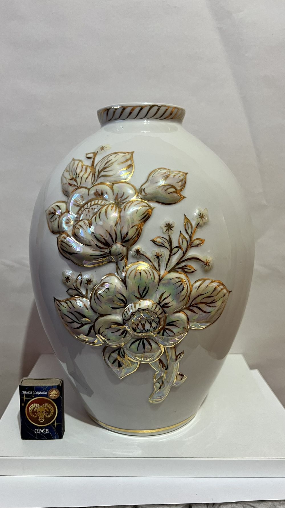 Фарфоровая ваза высота 28 см. производство Добрушский Фарфоровый Завод (ДФЗ). Продавец не является экспертом, состояние лотов всегда оценивайте самостоятельно, по представленным фотографиям, после выигрышной ставки вы получите предмет, изображенный на фотографии. Делая ставку вы принимаете условия продажи лота, установленные продавцом. Пересылку оплачивает покупатель. Выход на связь в течение 3 дней. Оплата лотов в течение 5 дней. Отправка лотов в течение 5 дней после оплаты и предварительной договорённости.