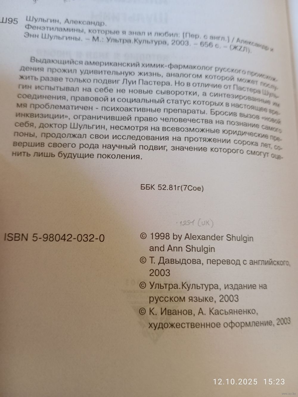 Шульгин Ал. Фенэтил.. которые я знал ( PIHKAL). Раритет!! В данном виде больше не переиздавалась! Ультра Культура 2003. В прекрасном состоянии, тв переплет. 656 с. Тираж 3000. Без торга! Возможность отправки Белпочтой, полная предоплата на карту Беларусбанк