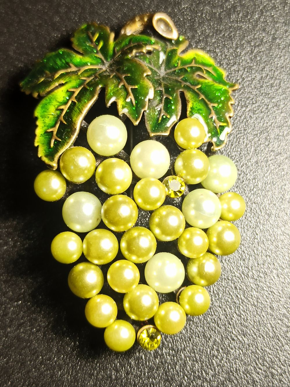 Редкая коллекционная винтажная брошь-булавка "Виноградная гроздь", авторская работа в единичных экземплярах...   Очень красивенная брошь, листья с цветными оттенками эмали, гроздь из жемчужин с оттенками бежевато -салатовых цветов с вкраплением светло бежевых  страз, изысканная работа, состояние отличное, без изьянов. см. на фото. Размер 6 см. ОБЯЗАТЕЛЬНО УТОЧНЯЙТЕ  НАЛИЧИЕ ПРЕДМЕТА ПОКУПКИ, ЗВОНИТЕ !! ЛОТ МОЖЕТ БЫТЬ ПРОДАН НА ДРУГИХ САЙТАХ ИЛИ В ЧАСТНОМ ПОРЯДКЕ . Торг уместен в разумных пределах. Спасибо за интерес к лоту. БУДУ БЛАГОДАРЕН, ЕСЛИ ПРОФЕССИОНАЛЫ ПОМОГУТ НАЙТИ БОЛЬШЕ ИНФОРМАЦИИ ПО ЭТОМУ УКРАШЕНИЮ. Телефон для связи указан в контактных данных, вопросы и предложения желательно присылать  через Viber. Передача предмета и получение денег в г.Минске, возможна  в  рабочие дни после 18-00 в центре города по договоренности.   Расчет наличными лично с продавцом при получении лота. Если у Вас есть другие варианты - предварительно оговаривайте их по телефону.  Возможна отправка Белпочтой,  Европочтой за счёт покупателя. Полная предоплата на карту до отправки лота по почте.