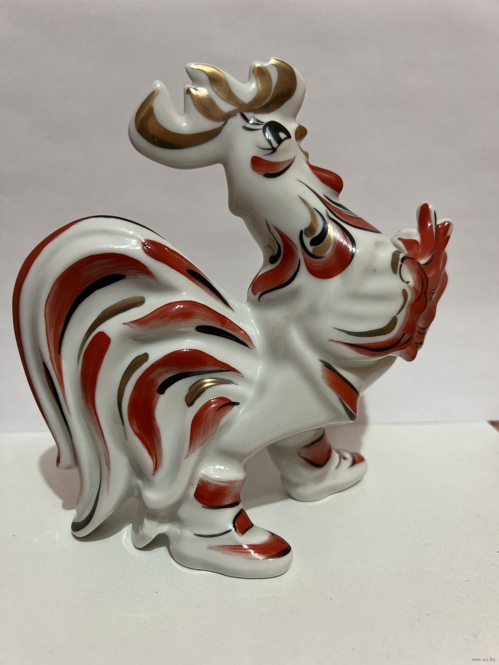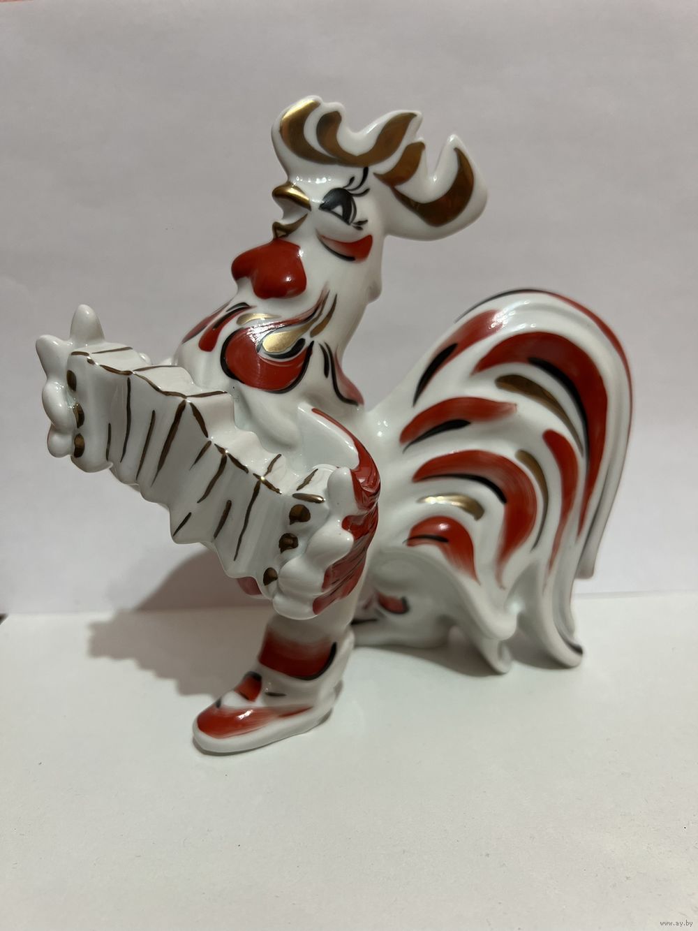 Фарфоровая статуэтка "Петушок с гармонью", высота 16 см, производство Добрушский Фарфоровый Завод (ДФЗ). Продавец не является экспертом, состояние лотов всегда оценивайте самостоятельно, по представленным фотографиям, после выигрышной ставки вы получите предмет, изображенный на фотографии. Делая ставку вы принимаете условия продажи лота, установленные продавцом. Пересылку оплачивает покупатель. Выход на связь в течение 3 дней. Оплата лотов в течение 5 дней. Отправка лотов в течение 5 дней после оплаты и предварительной договорённости.