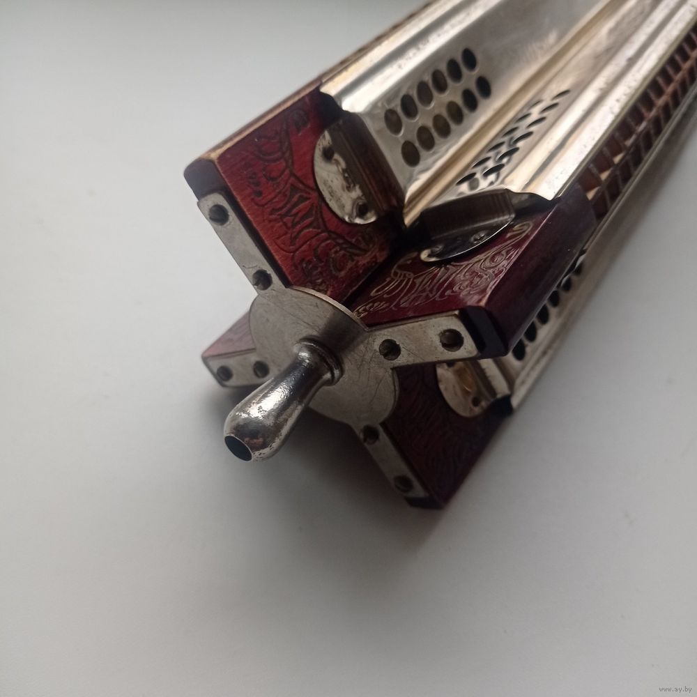 Корпус из кленового дерева, латунные язычковые пластины, крышки из нержавеющей стали.