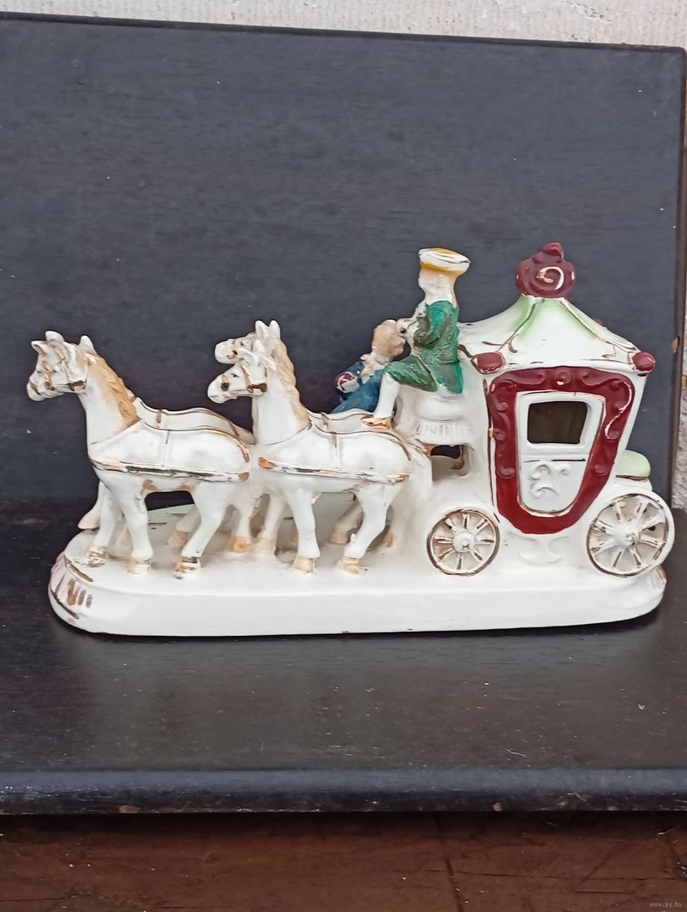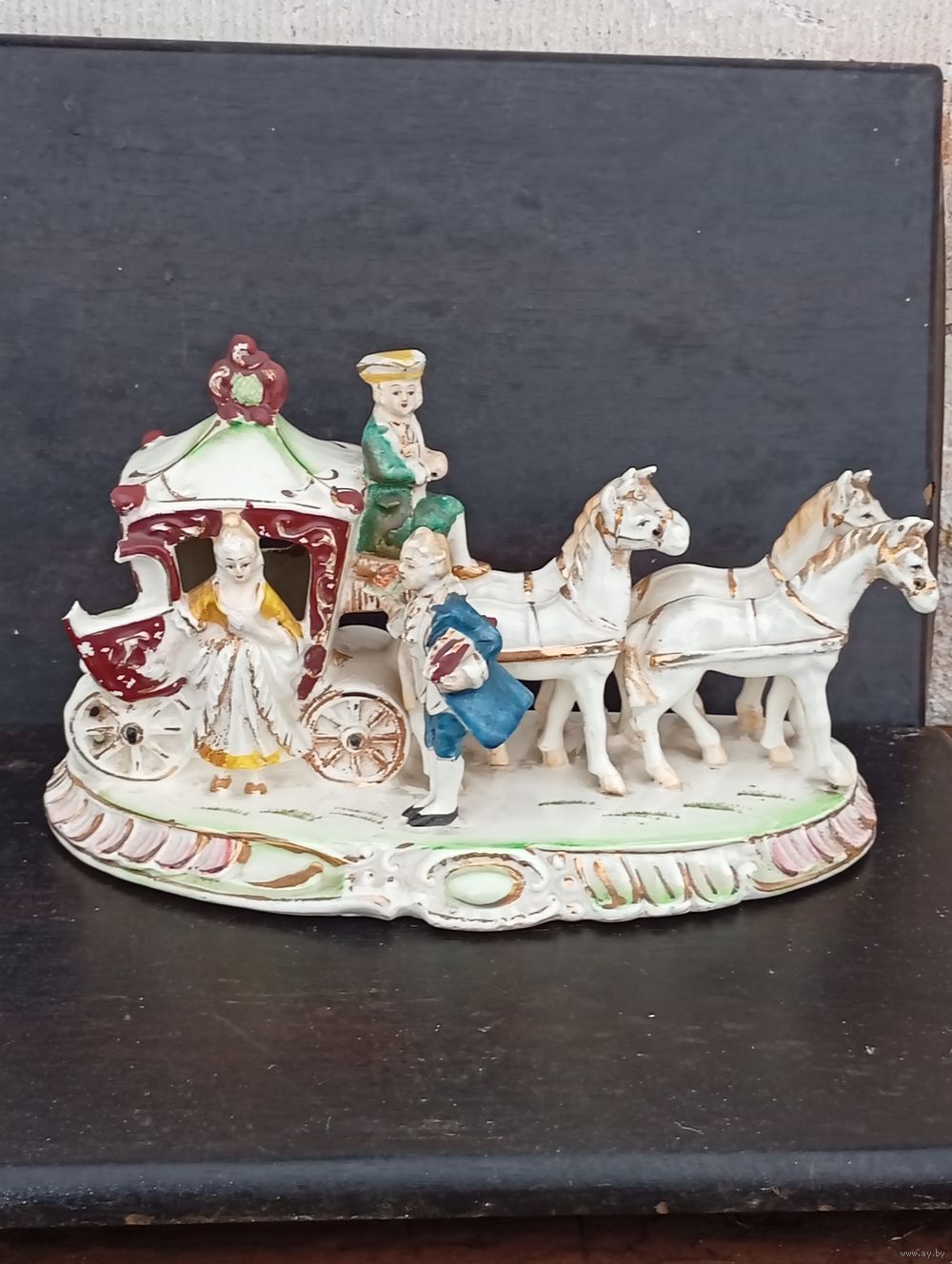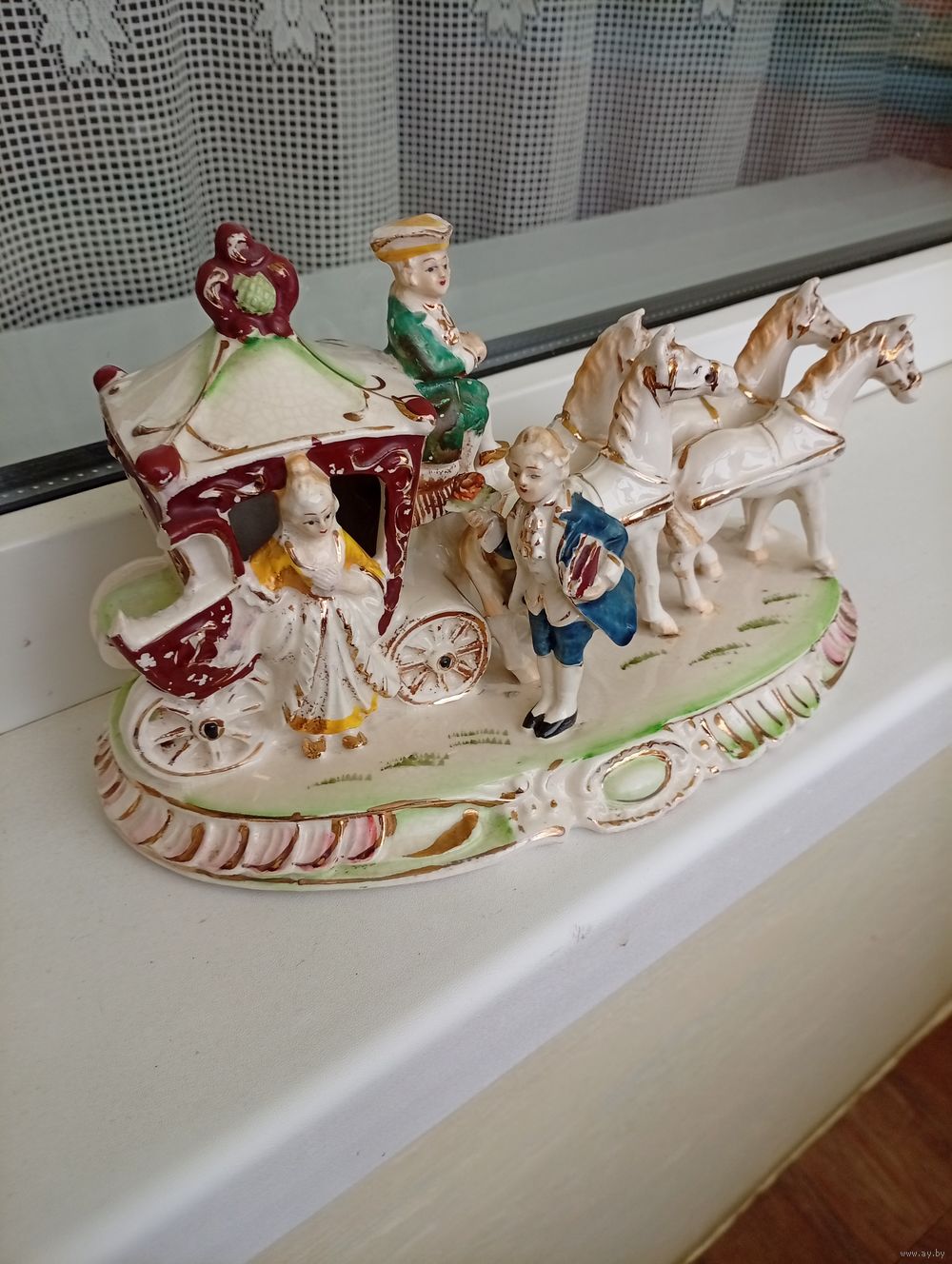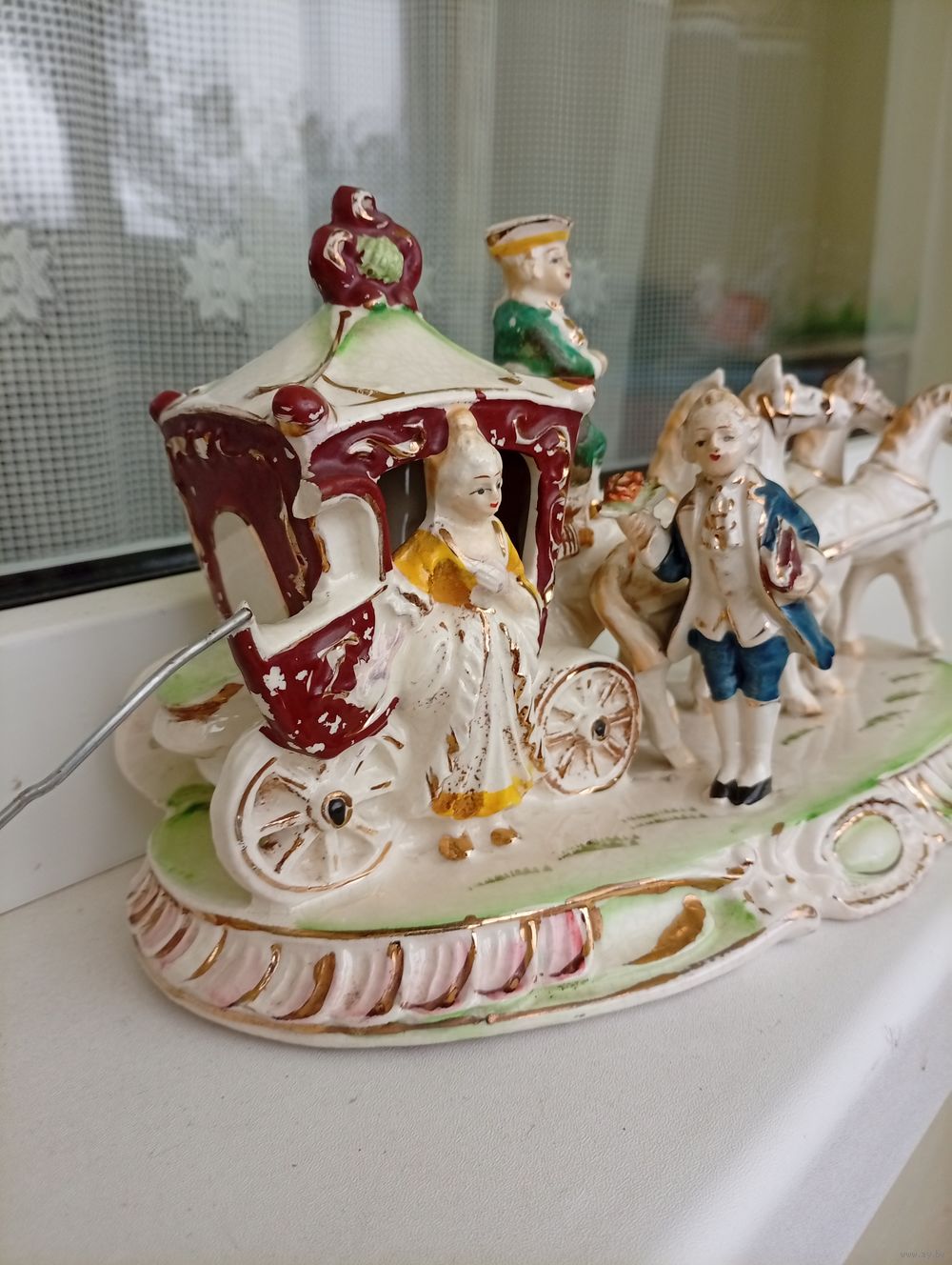 | в реставрацию!!! ущерб на дверки кареты, а так целая и без сколов и трещен! Есть и потёртости краски следы времени!ну очень интерьерная! | |