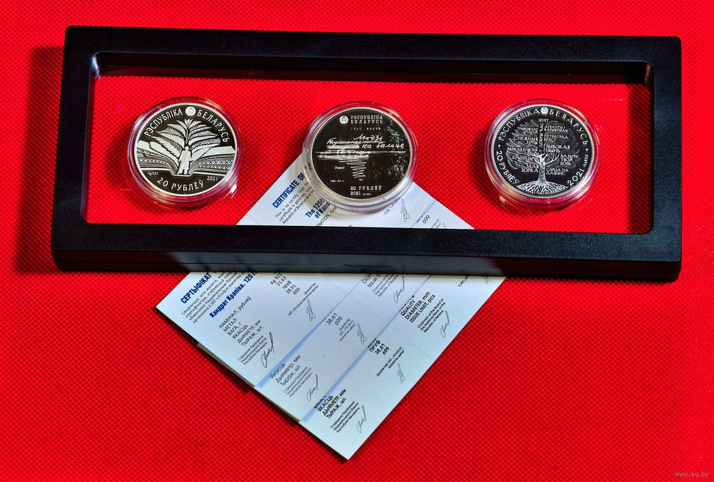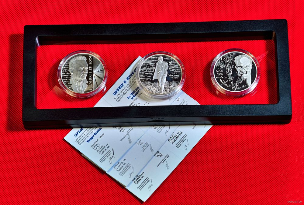 Триада монет. Вместе с монетами, посвящёнными Крапиве и Шамякину, получается цельная тематическая коллекция — своеобразный памятник белорусской литературе.