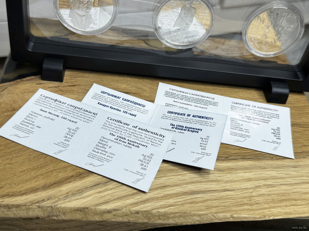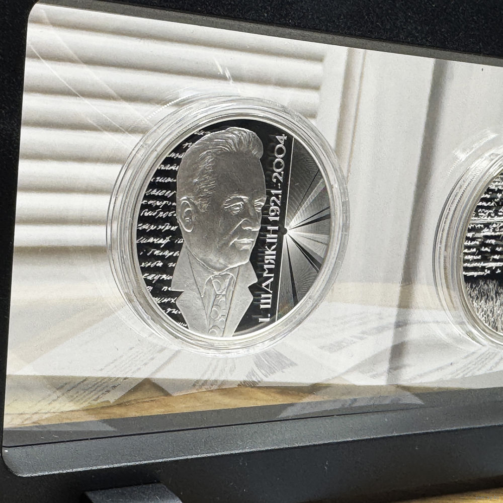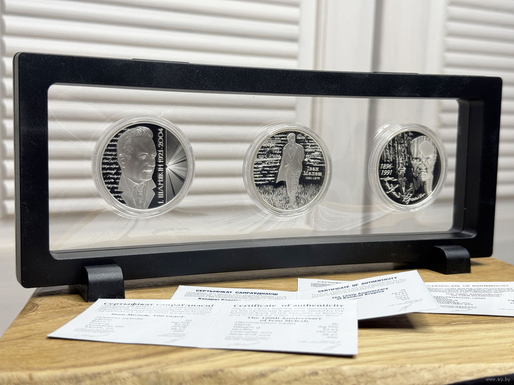 Триада монет. Вместе с монетами, посвящёнными Мележу и Крапиве, получается цельная тематическая коллекция — своеобразный памятник белорусской литературе.