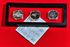 Фото комплекта всей триады демонстрируют вариант экспонирования в кабинете. В текущем лоте представлена одна монета.