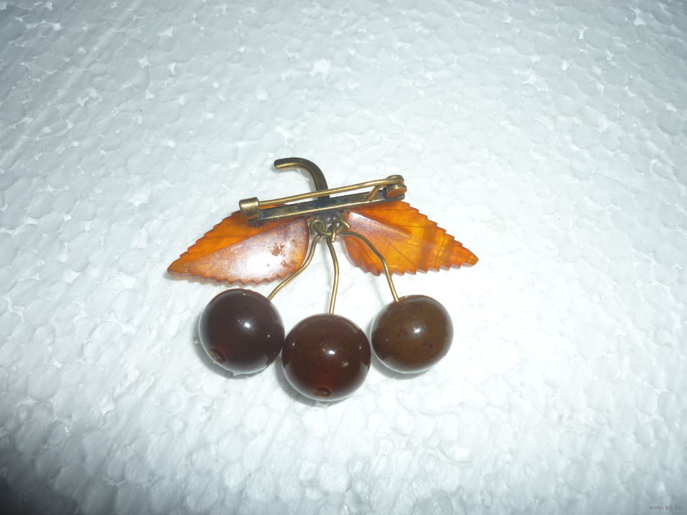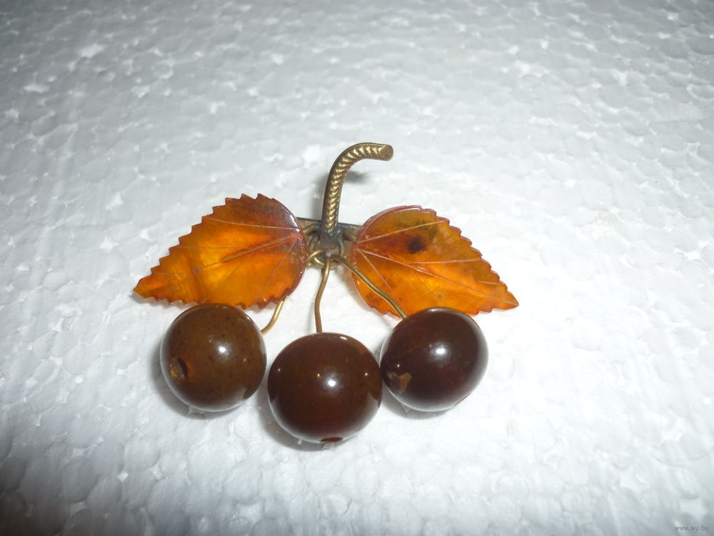 Антикварная брошь из самых ранних-1947 г.- клеймо -МЕТ--вишни--немецкий пресс
