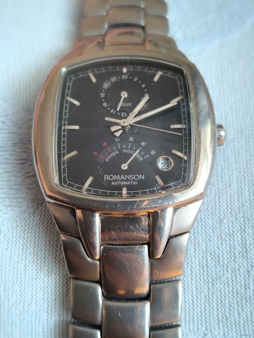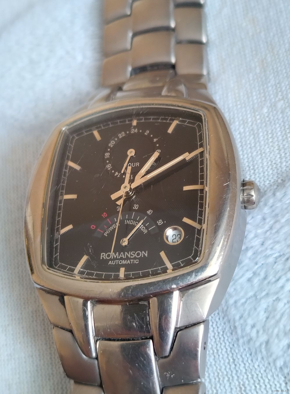 Редкая механика южнокорейского бренда Romanson Automatic (модель UM1565HM) с сапфировым стеклом и индикатором запаса хода (крайне удобная функция).