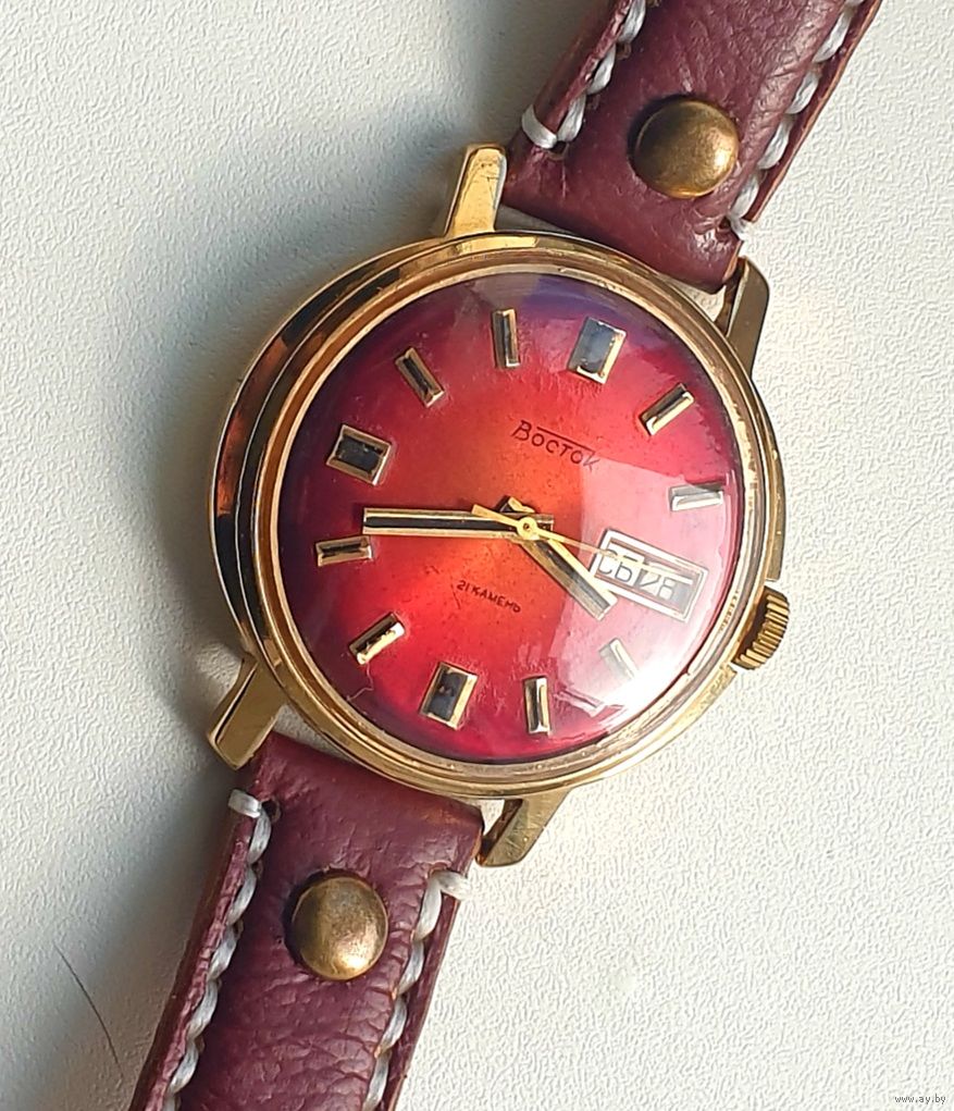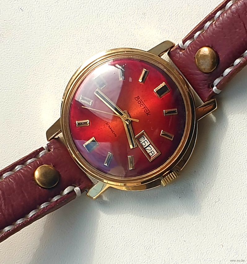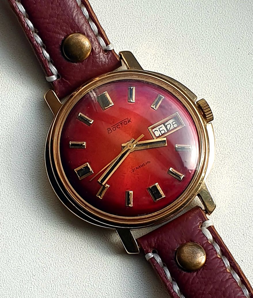 Редкие часы СССР Восток 2427А с двумя календарями и автоподзаводом . Все работает всё переключается. Позолота ау5 в сохране.В комплекте с нов.кож.рем.