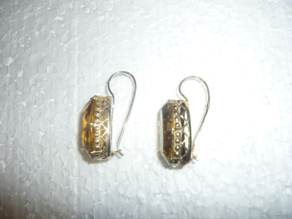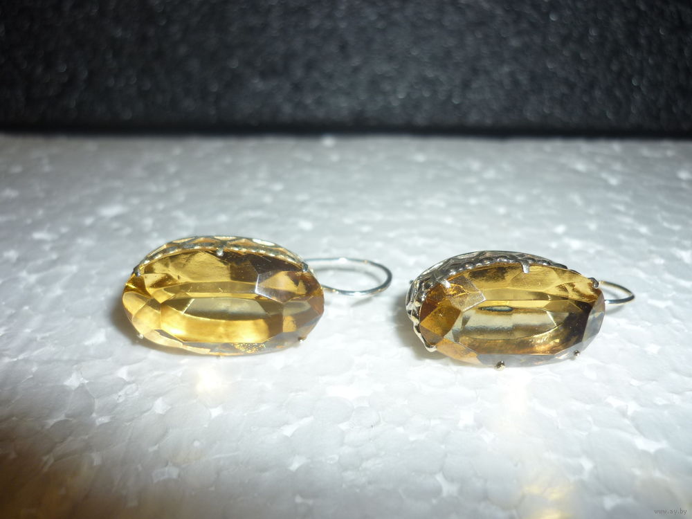 Уже антикварные--1975 г.--звезда--серебро в позолоте--875, крупные, вес--8.6 гр.--вставки корунды редкого цвета цитрина