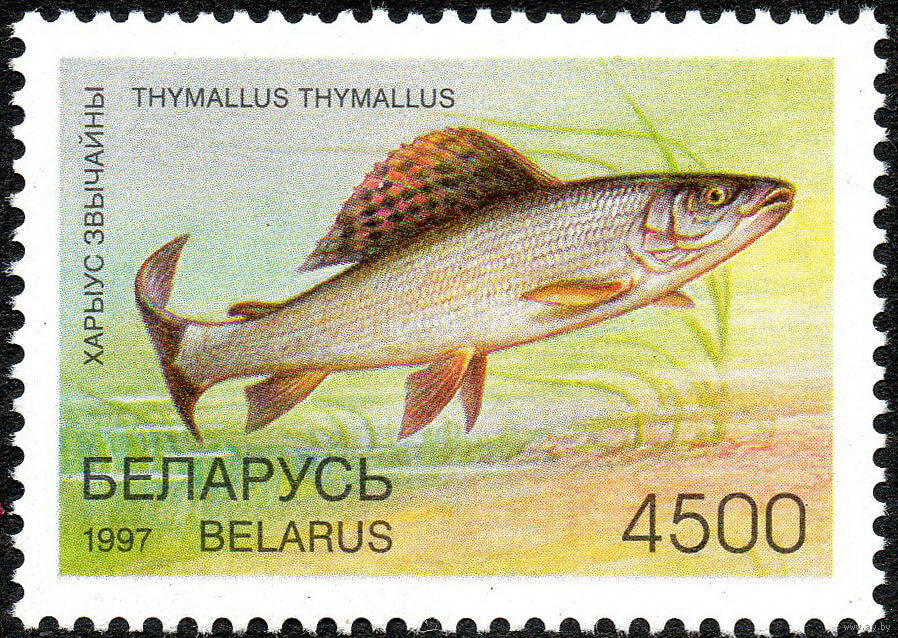 Редкие виды рыб водоемов Хариус Беларусь 1997 год 1 марка