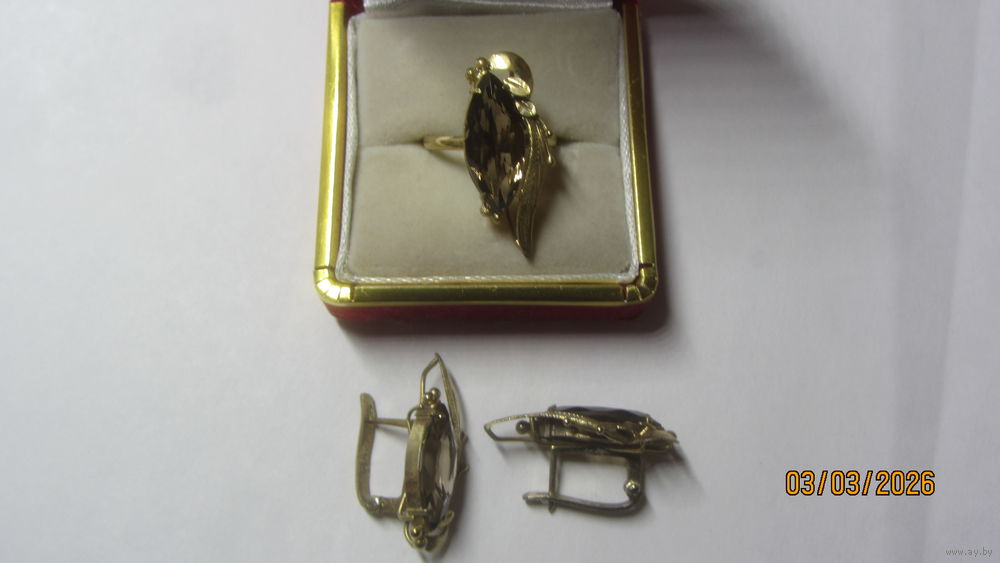 1) фото 1 - набор,,топаз,, вес 8,94 г.,кольцо 18 р-р.( позолота 585 пр). Цена 220.0 руб.