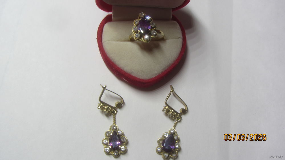 2) фото 2 - набор,,аметист с фианитами,,,вес 7,13 г.,кольцо 18 р-р. (позолота 18 карат.) Цена 220.0 руб.