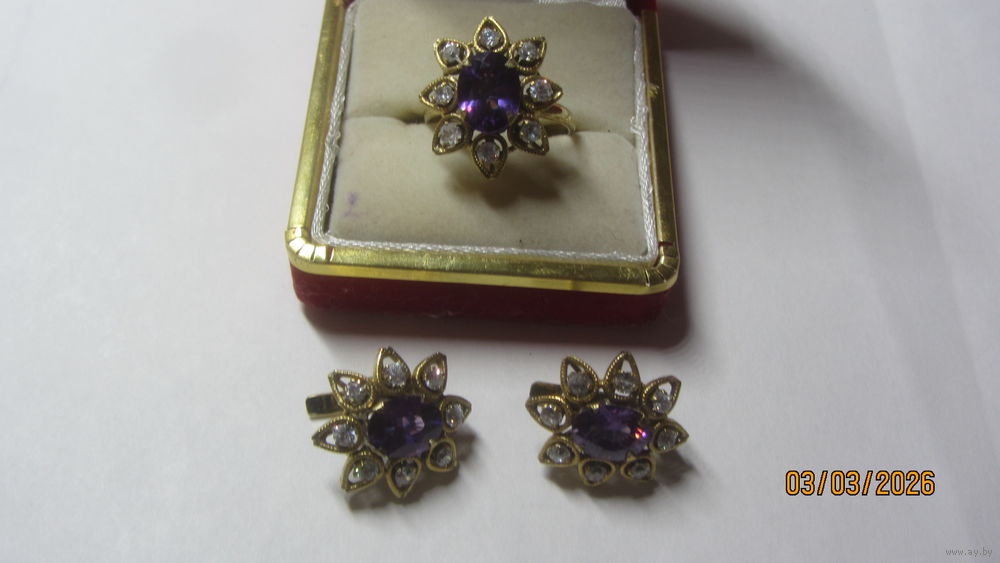 3) фото 3 - набор,,аметист с фианитами,,,вес 11,1 г.,кольцо 18,5 р-р. (позолота 585 пр.) Цена 260.0 руб., Есть второй такой набор весом 10,65г. (кольцо 18,5 р-р)