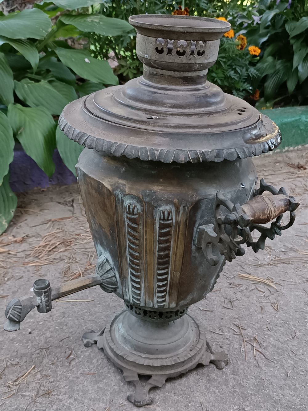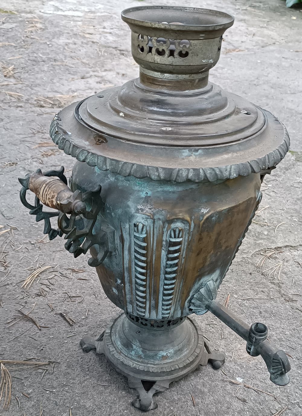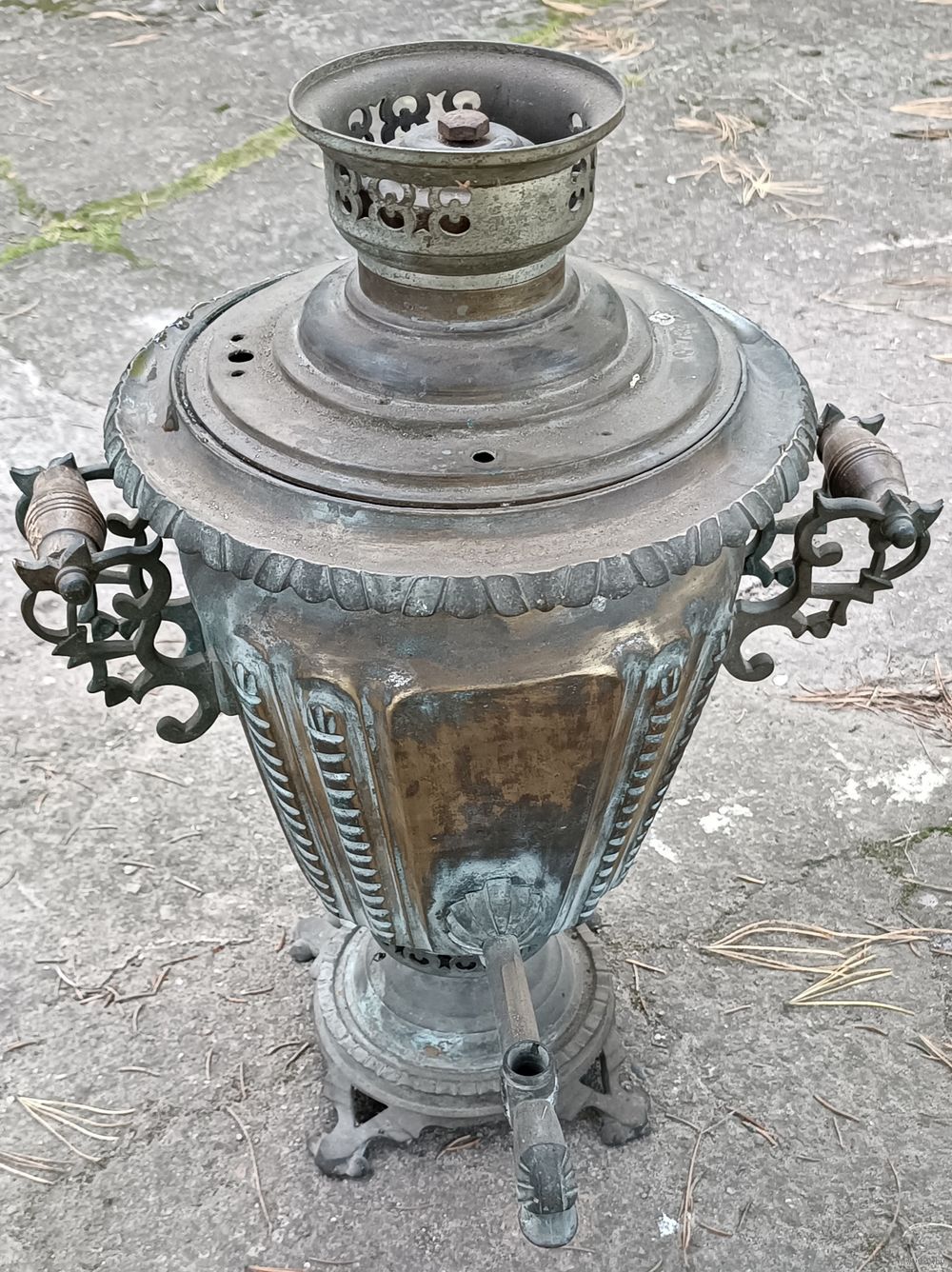 Редкий царский самовар рюмка с колонами,византийские ручки, ф.бр Тейле. Самовар без реставраций. 3 литра. Высота 43 см. Толстостенный, тяжёлый. Не течет, трещин и вмятин нет, ручки родные. Краник отсутствует. Доставку оплачивает покупатель. Полная предоплата до отправки лота по почте. Качественную упаковку гарантирую! Отправка возможна как Белпочтой, так и Европочтой. Выход на связь в течении трёх дней, выкуп лота в течении семи дней, далее черный список и отрицательный отзыв! Делайте обдуманно Вашу ставку, прежде чем покупать лот, хорошо подумайте, нужен ли он Вам! Спасибо за проявленный интерес к данному лоту!