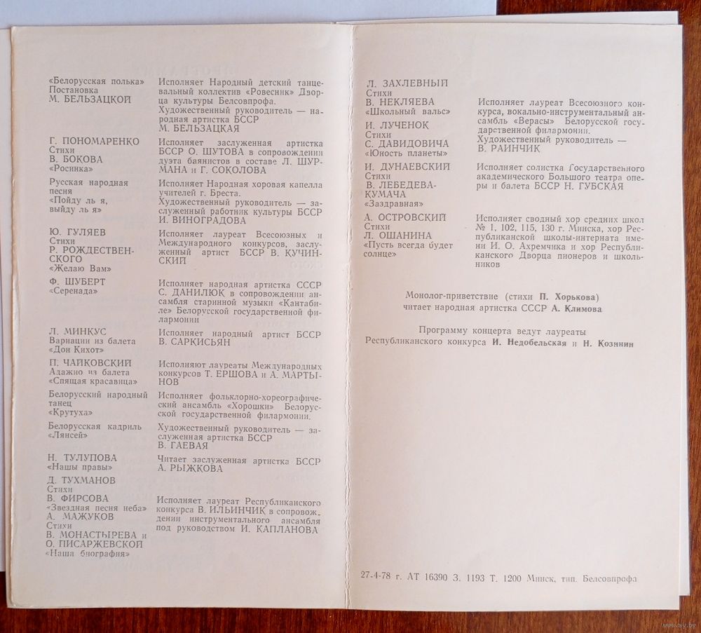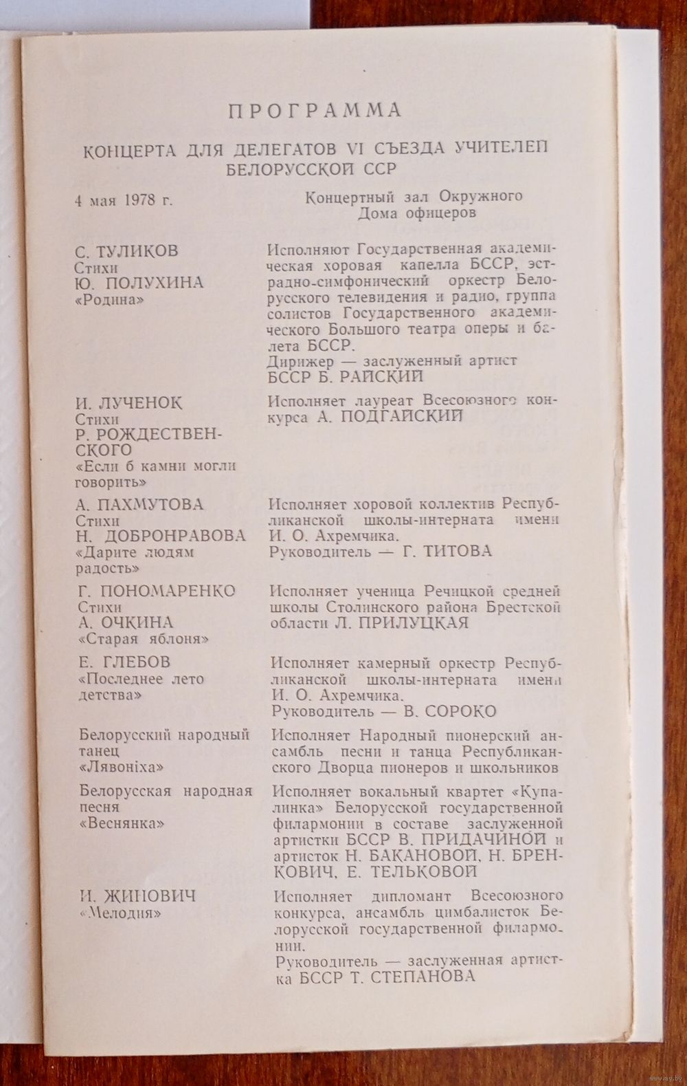 Редкий ежедневник эпохи: VI Съезд учителей БССР (1978г.). + Вложение, программа праздничного концерта.
