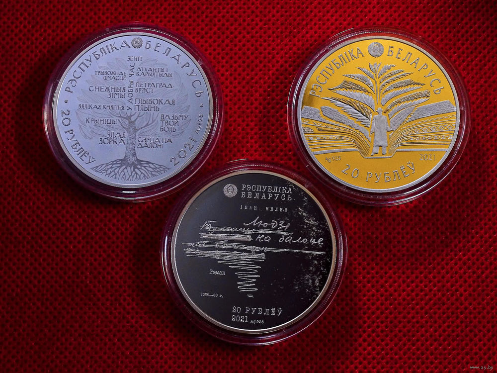 Представляю всю триаду монет, которая образует цельную тематическую коллекцию — своеобразный памятник белорусской, советской литературе.