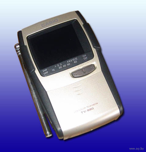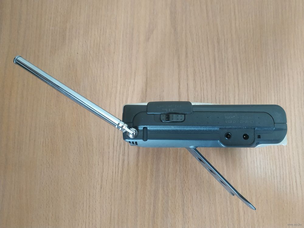 Телевизор предназначен для приёма передач аналогового ТВ сигнала в диапазонах UHF и VHF. Имеет регулировку цветности, автопоиск каналов, регулировку громкости и яркости, разъем EAR - для подключения наушников. Приём сигнала осуществляется oт собcтвенной телескопической стержневой антенны. Размеры телевизора: Д 12,7 см х Ш 8,38 см х Т 3,56 см . 2,3-дюймовый (5,84 см) цветной экран с антибликовым покрытием (Ti-STN). Питание телевизора может осуществляться как от 4-х пальчиковых батареек типа АА, так и от внешнего источника (блока питания) c выходным напряжением 6V . Для удобства просмотра телепрограмм сзади телевизора имеется откидная подставка. Блок питания c выходным напряжением 6V - в комплекте.